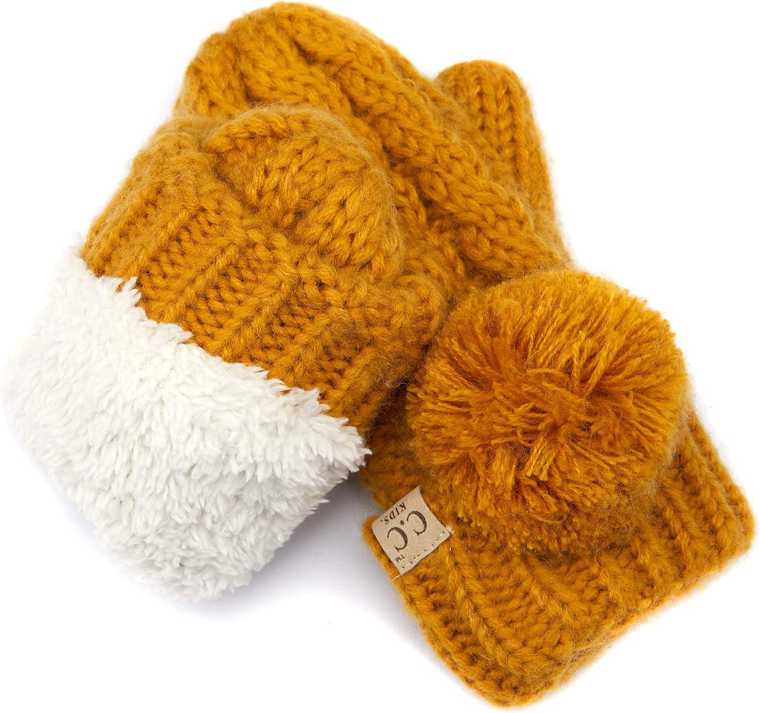 C.C Colorful Knit Children's Mittens – Cozy with Pom Pom Accent(Mustard)