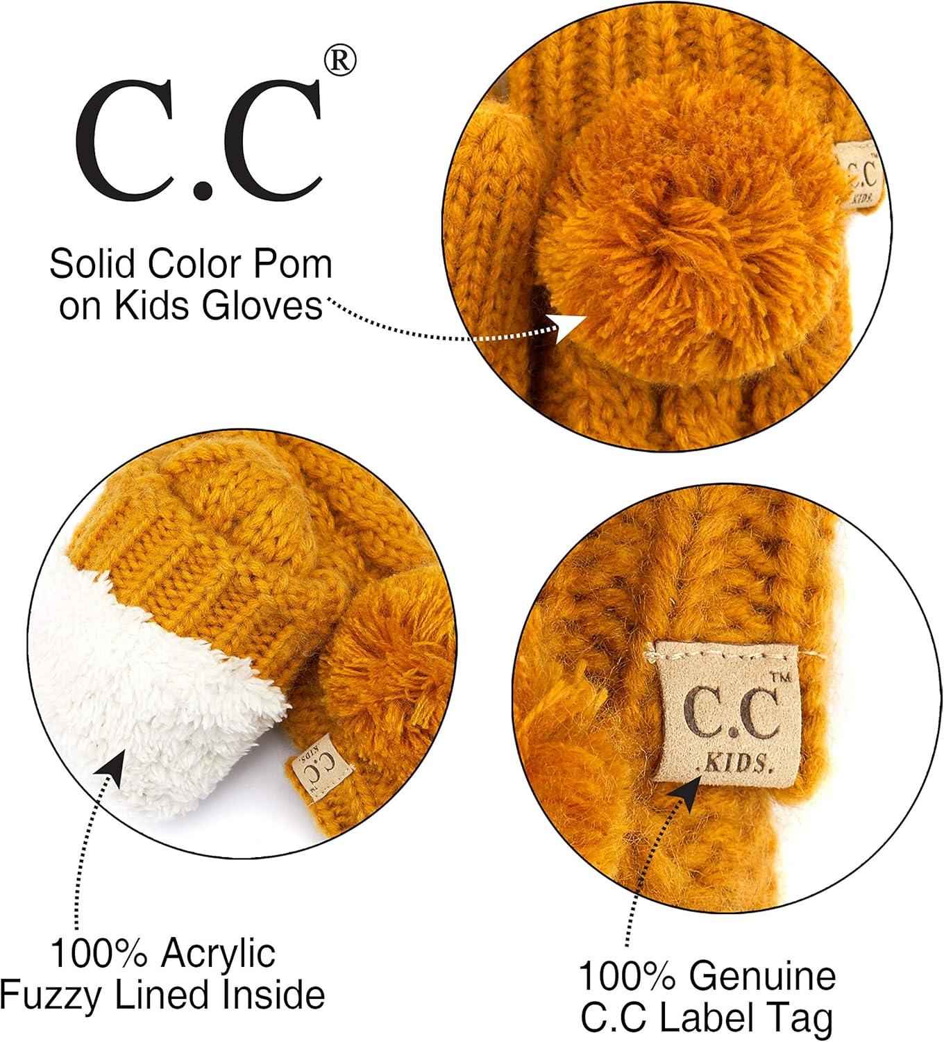 C.C Colorful Knit Children’s Mittens – Cozy with Pom Pom Accent(Mustard)