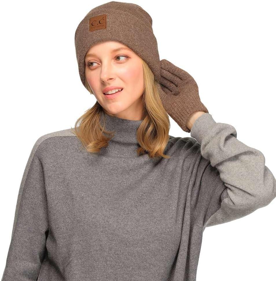 C.C Eco Friendly Unisex Classic Warm Winter Beanie and Touchscreen Glove Set(Heather Cacao)