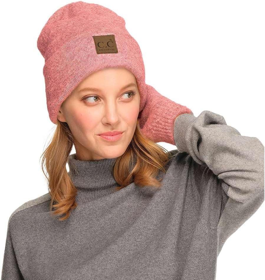 C.C Eco Friendly Unisex Classic Warm Winter Beanie and Touchscreen Glove Set(Heather Strawberry)