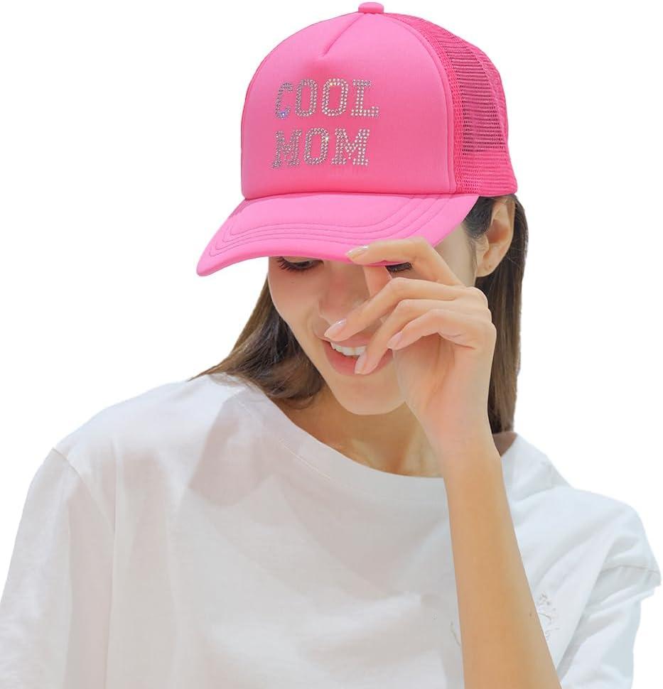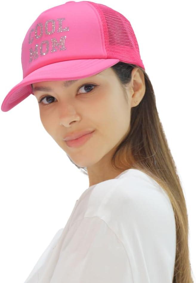 C.C Embellished Foam Trucker Cap for Women(Cool Mom Rhinestone-hot Pink)