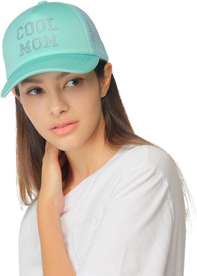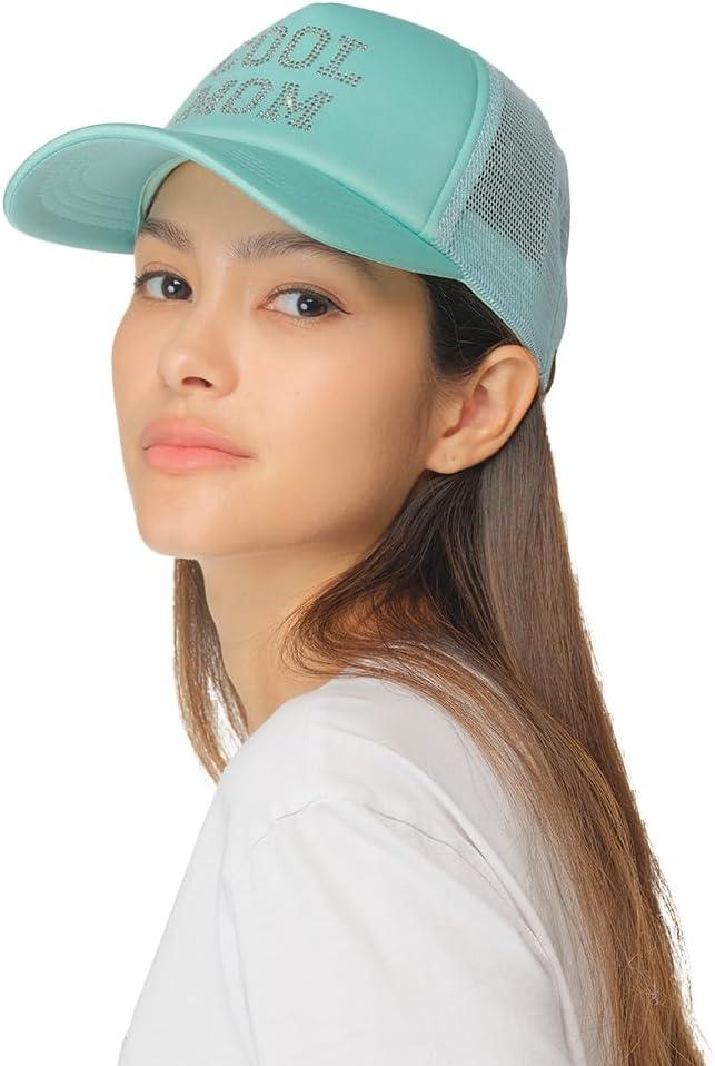 C.C Embellished Foam Trucker Cap for Women(Cool Mom Rhinestone-mint)
