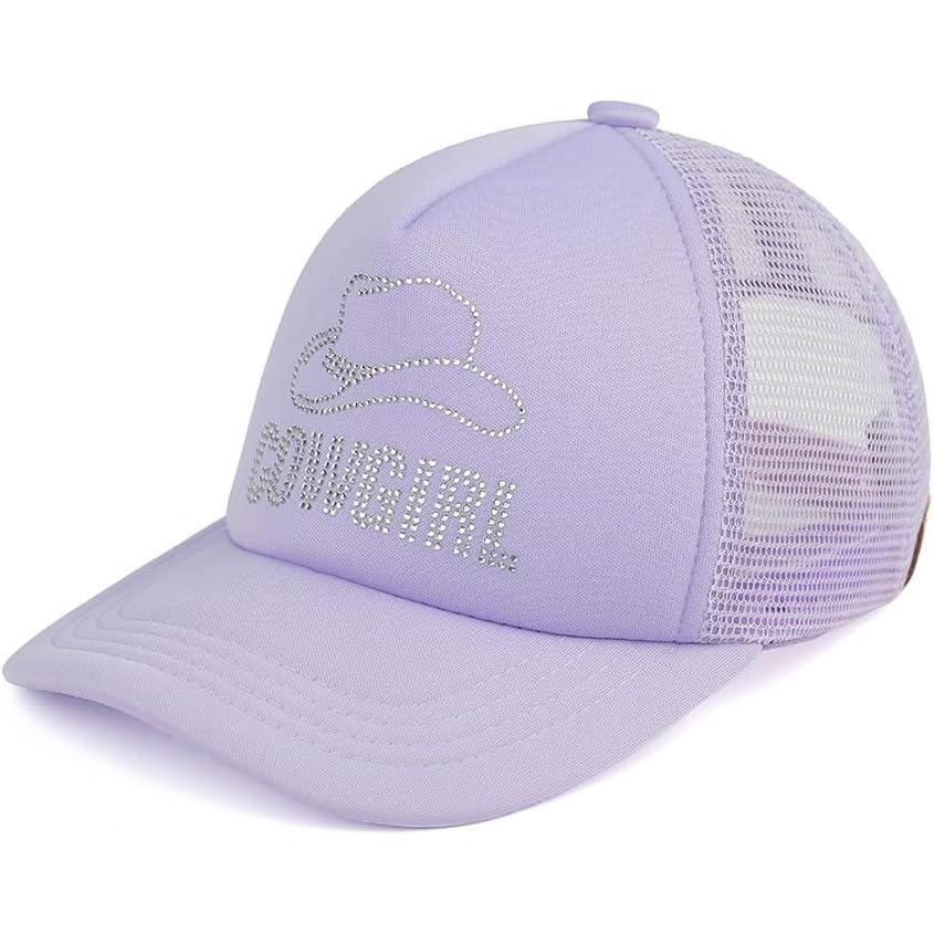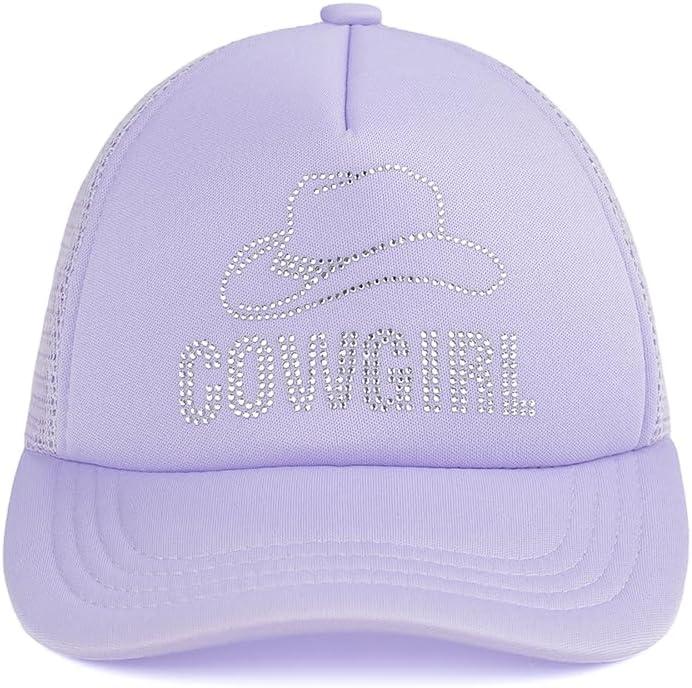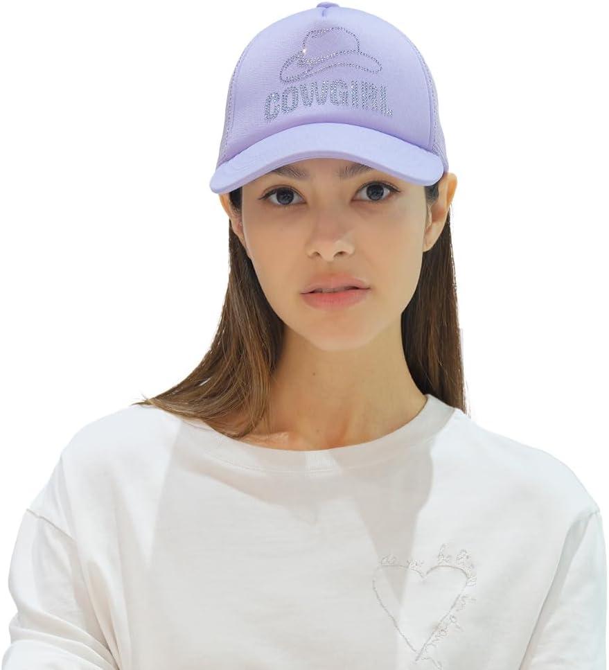 C.C Embellished Foam Trucker Cap for Women(Cow Girl Rhinestone-lavender)
