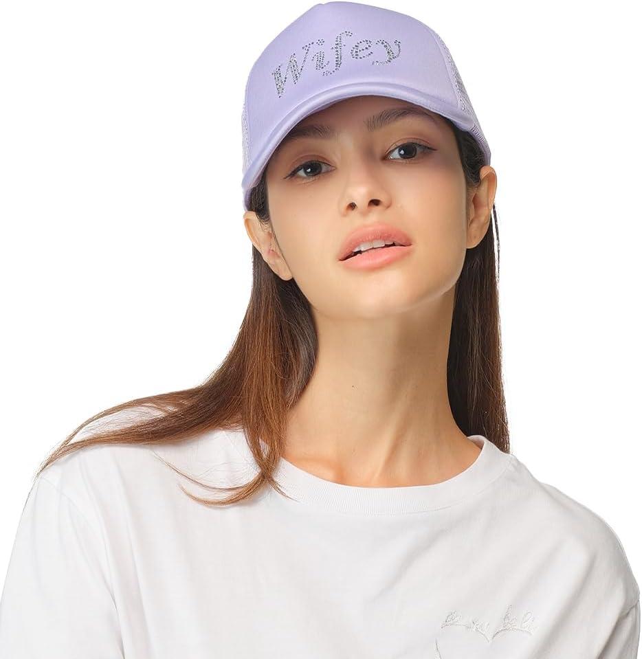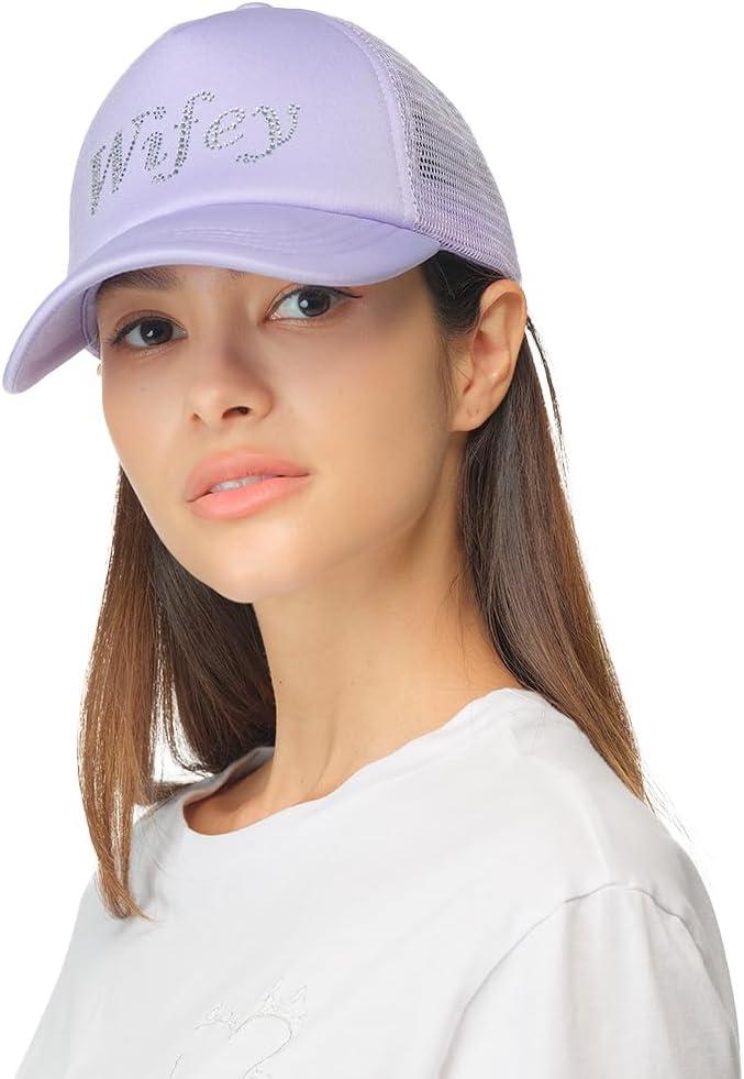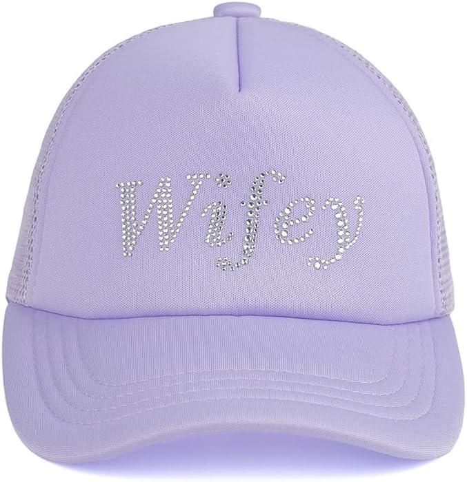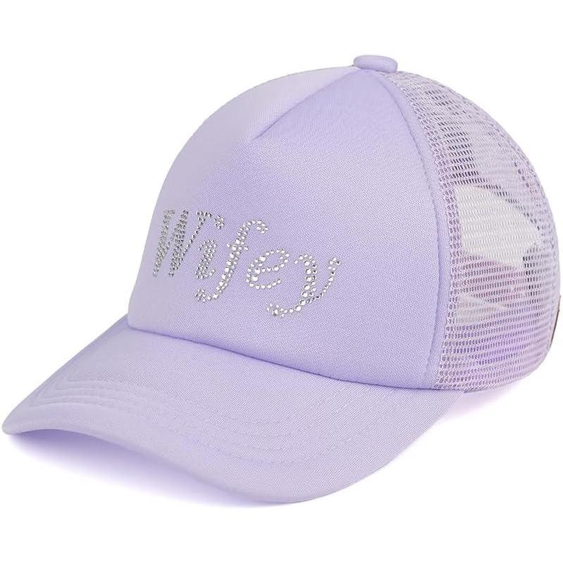 C.C Embellished Foam Trucker Cap for Women(Wifey Rhinestone-lavender)