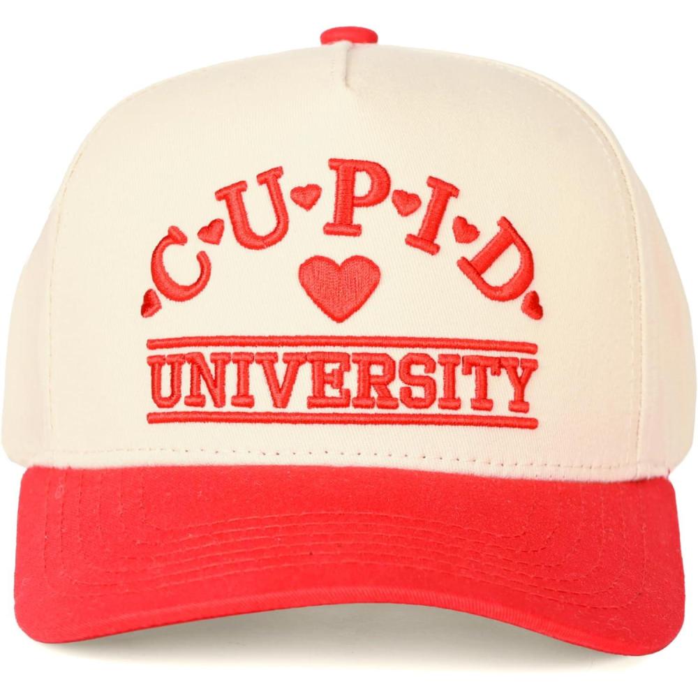 C.C Embroidered Two-Tone Trucker Snapback Hat(Cupid University- Red/Beige)