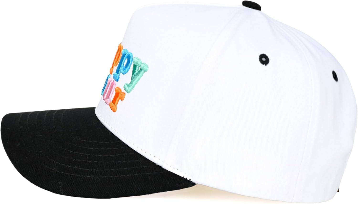 C.C Embroidered Two-Tone Trucker Snapback Hat(Happy Hour- Black/White)
