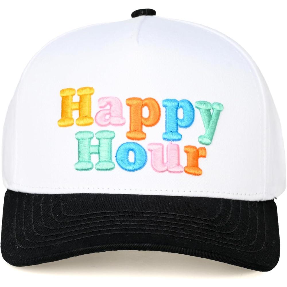 imageCC Embroidered TwoTone Trucker Snapback HatHappy Hour BlackWhite