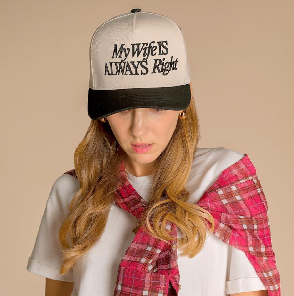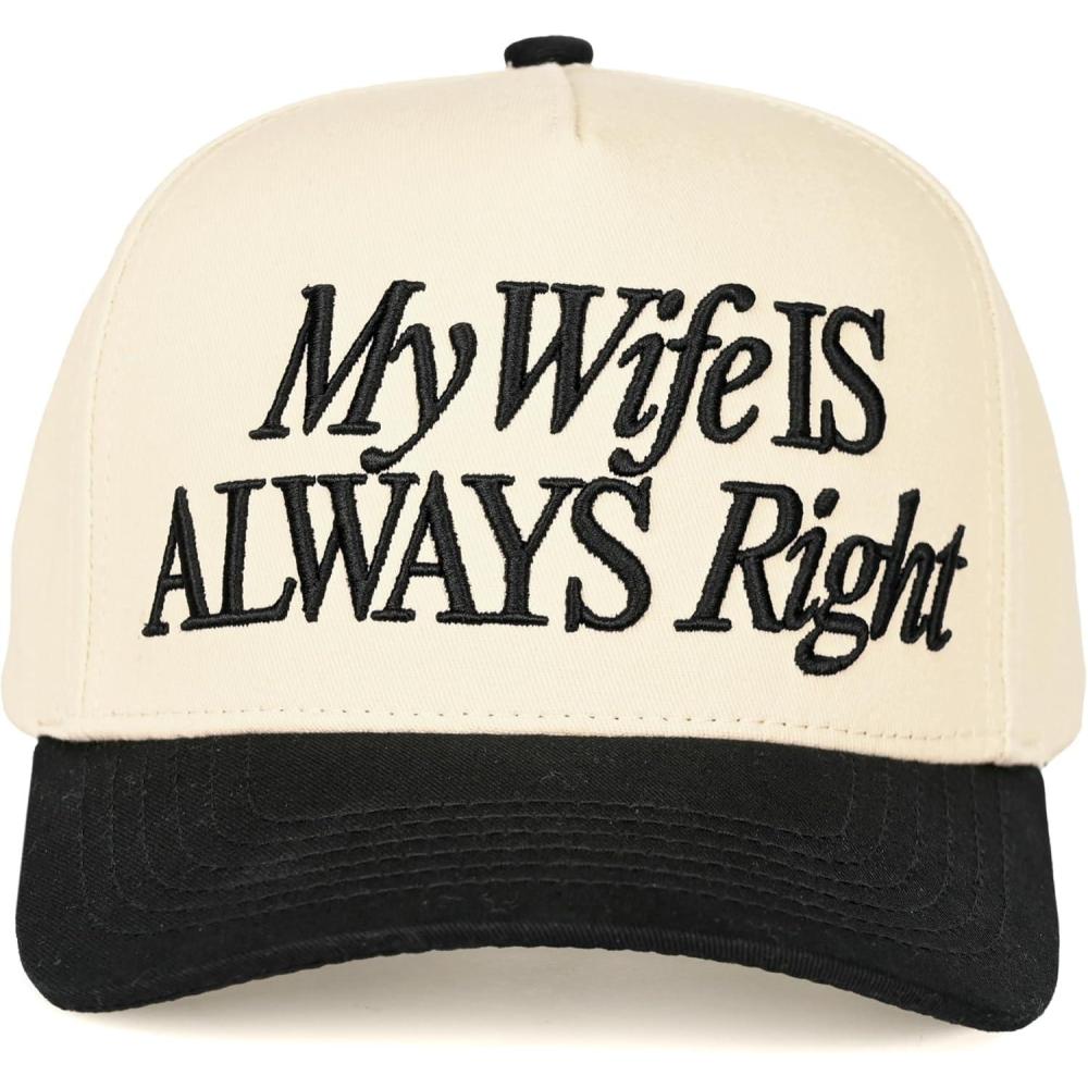C.C Embroidered Two-Tone Trucker Snapback Hat(My Wife is Always Right- Black/Beige)