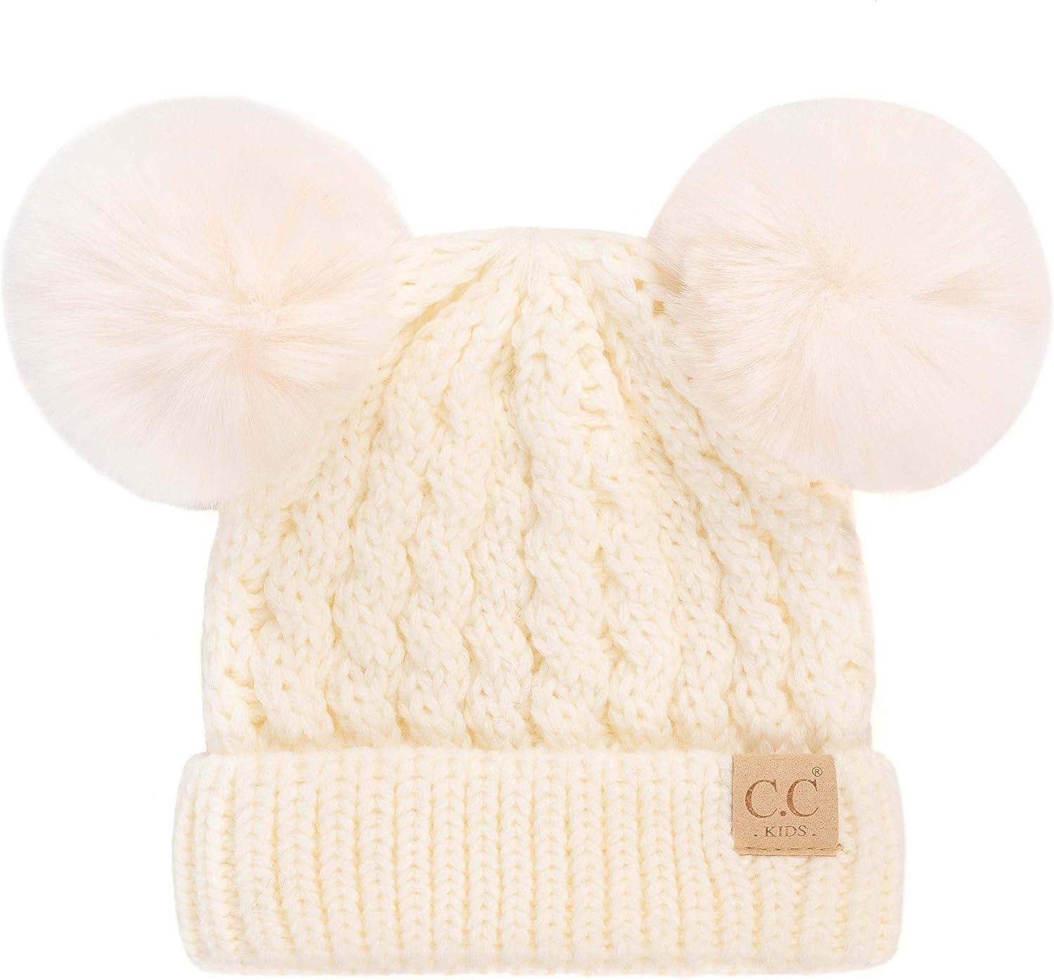 C.C Exclusives Children Kid Double Pompom Knitted Beanie for Kids Ages 2-5 (KID-23)(KID-24)(KIDS-2055)(A Pompom Ivory)