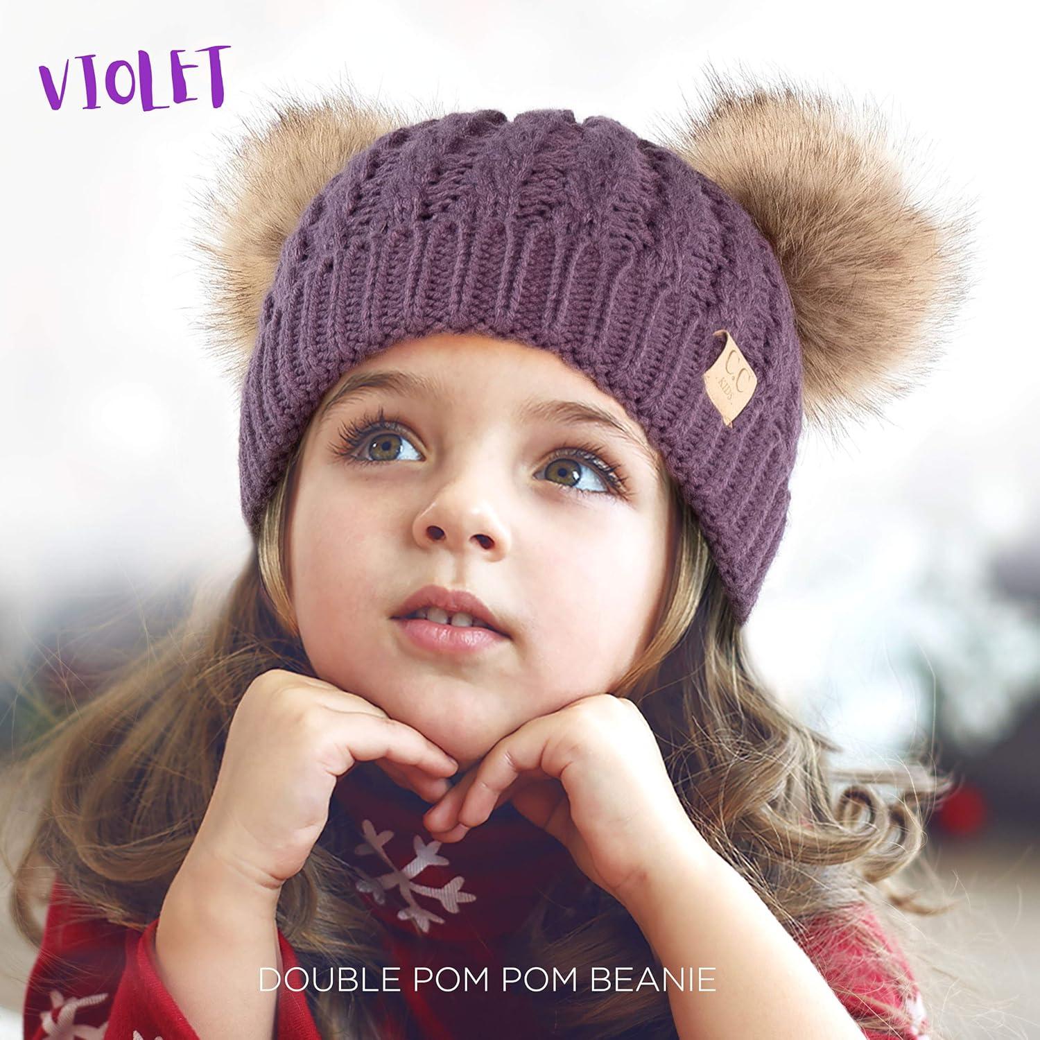 imageCC Exclusives Children Kid Double Pompom Knitted Beanie for Kids Ages 25 KID23KID24KIDS2055A Pompom Violet