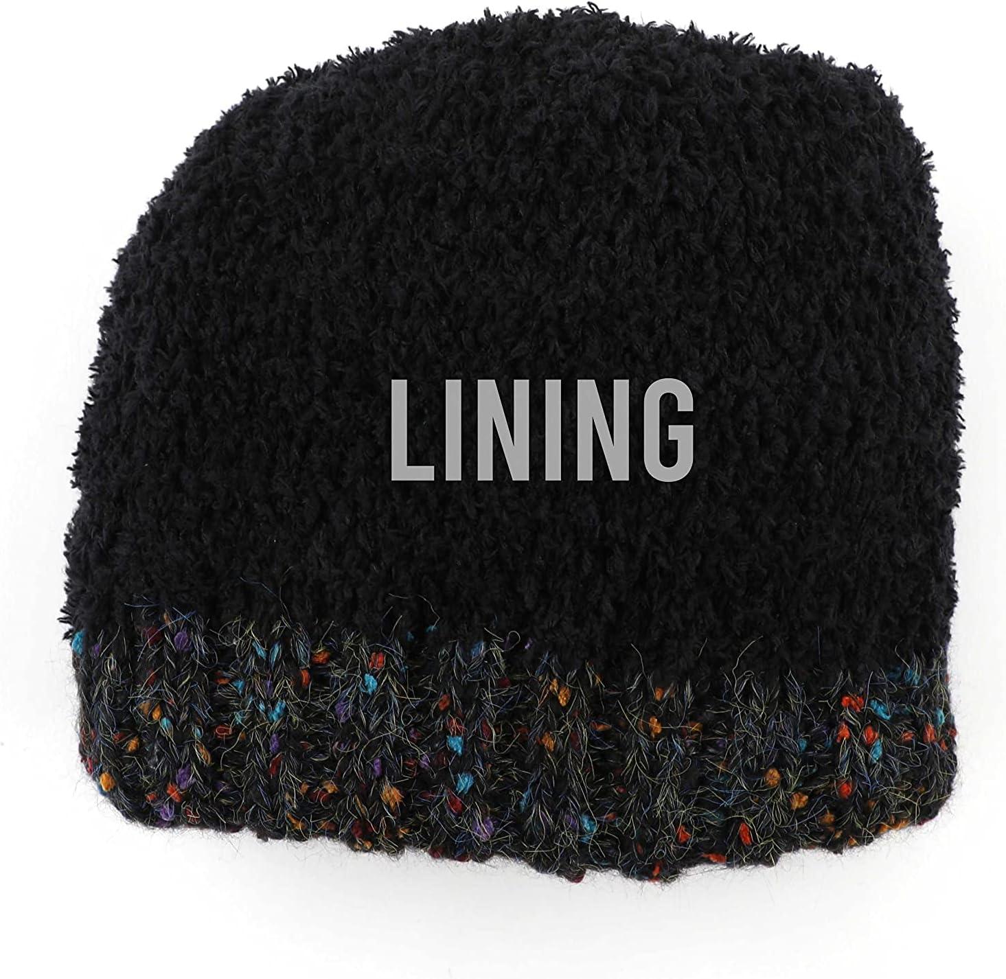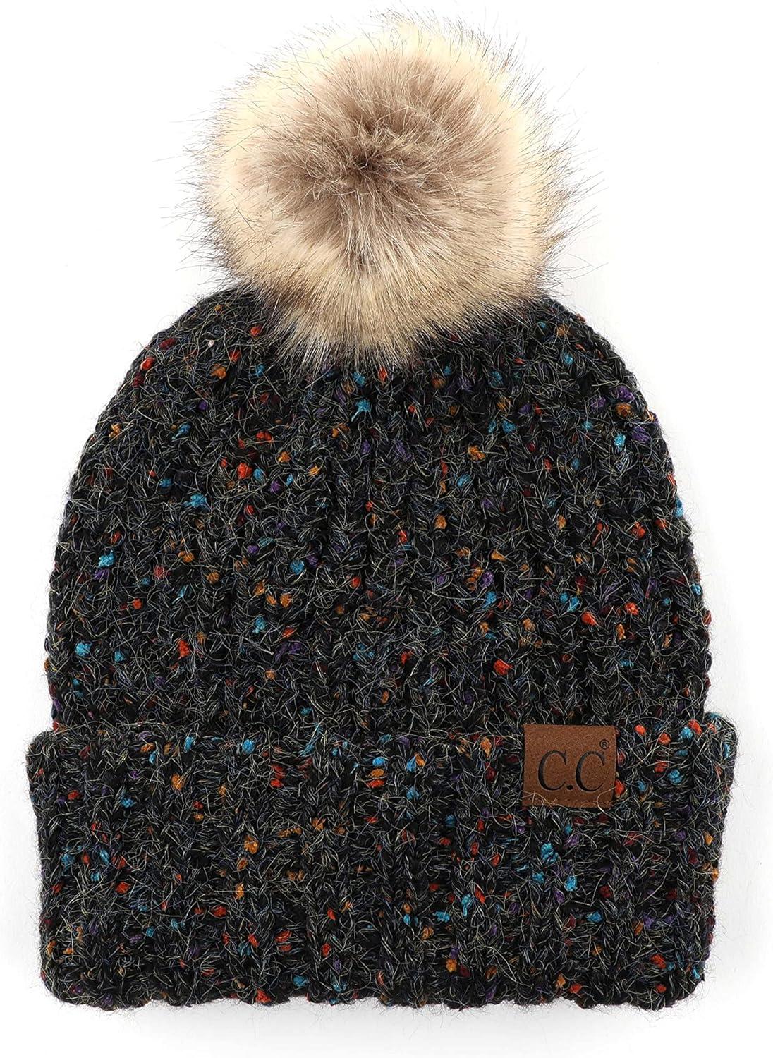 C.C Exclusives Fuzzy Lined Knit Fur Pom Beanie Hat (YJ-820)(A Confetti Mohair Ribbed-black)