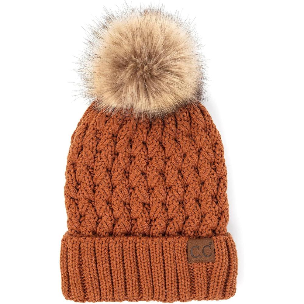 Score big savings on C.C Exclusives Fuzzy Lined Knit Fur Pom Beanie Hat (YJ-820)(A Lattice Crossover Stitch-clay) during our back-to-school sale. Limited quantities available.