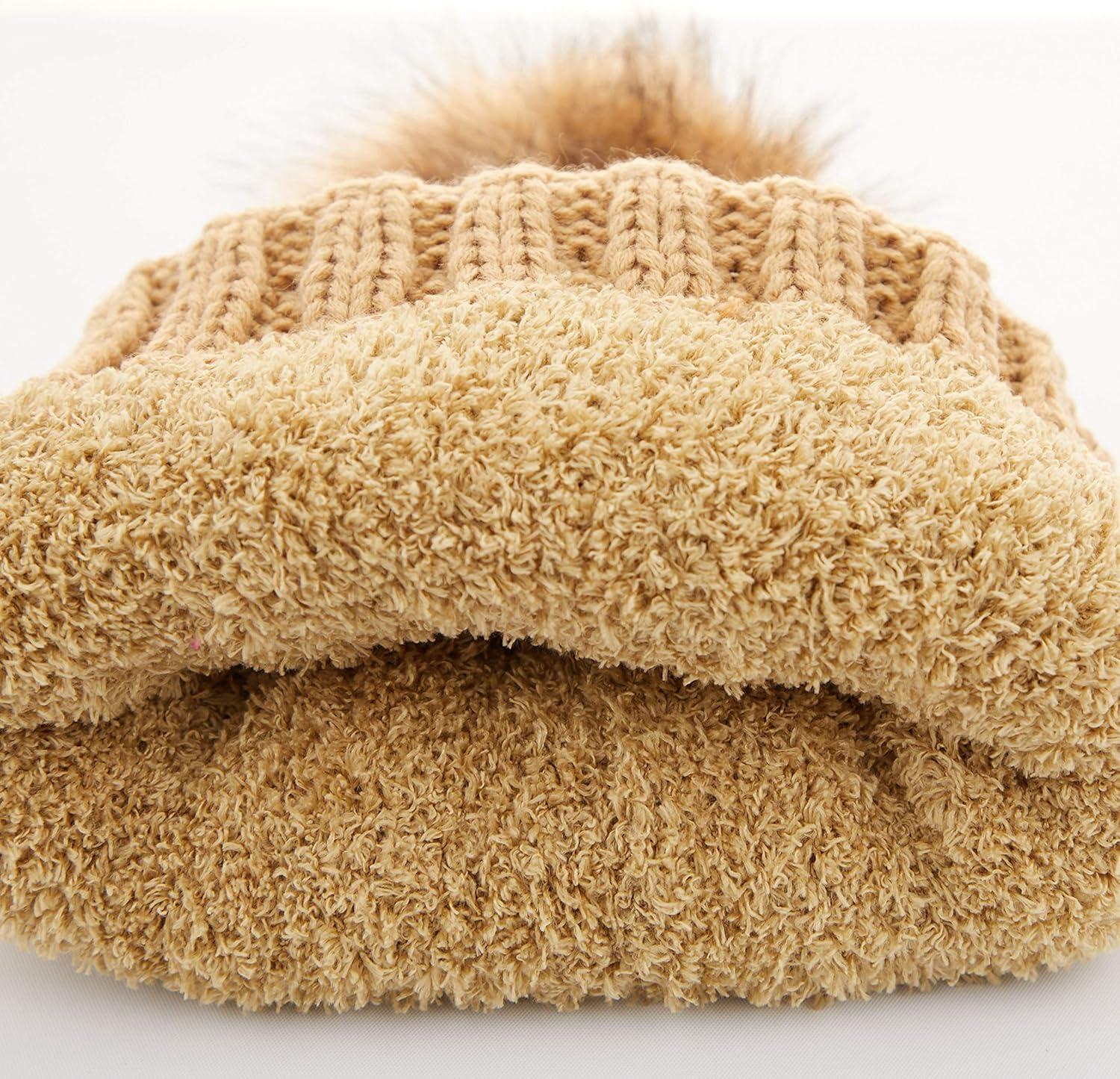 imageCC Exclusives Fuzzy Lined Knit Fur Pom Beanie Hat YJ820Camel