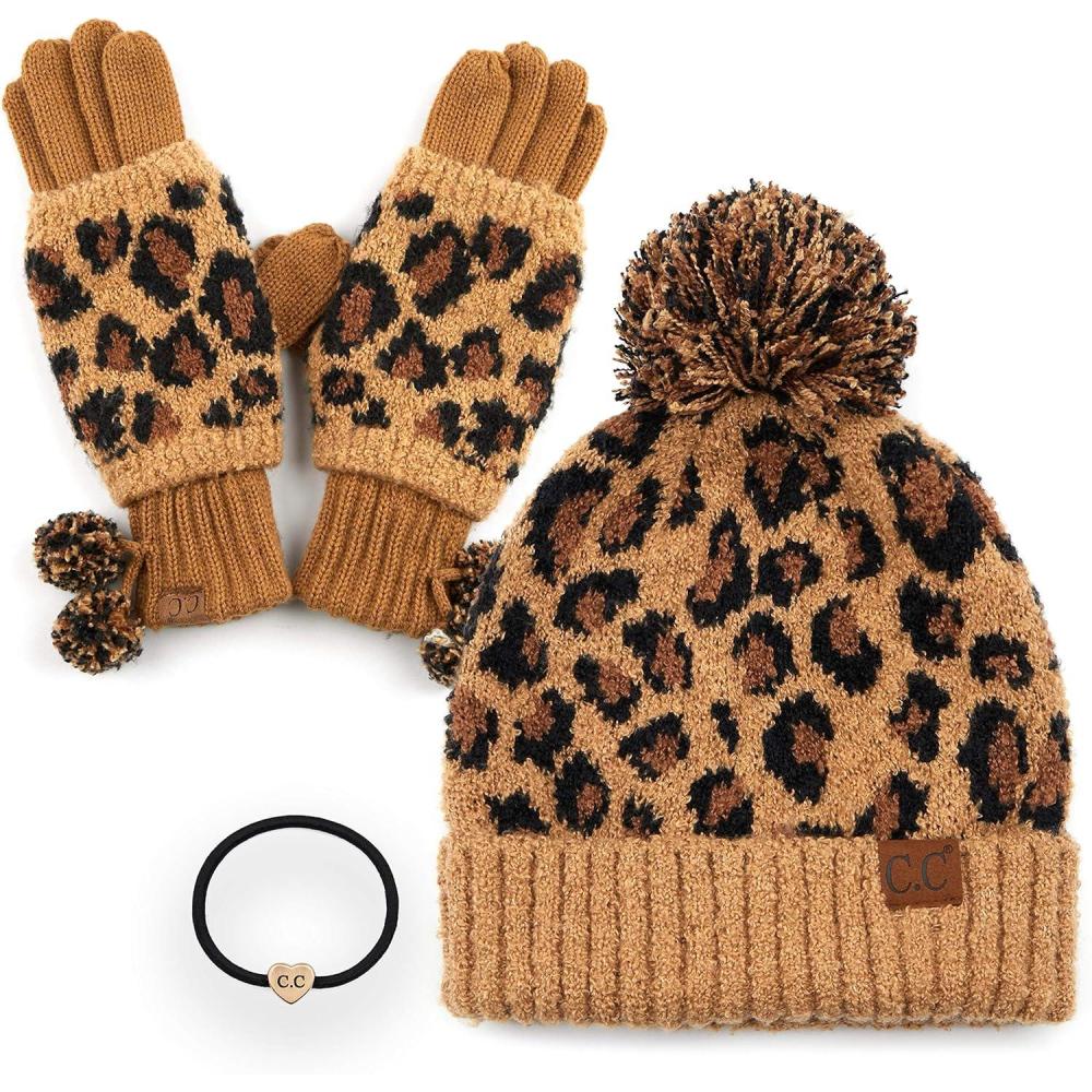 imageCC Exclusives Soft Beanie hat with Leopard Pattern and Fur PomHAT7001SF7001A Gift Setlatte
