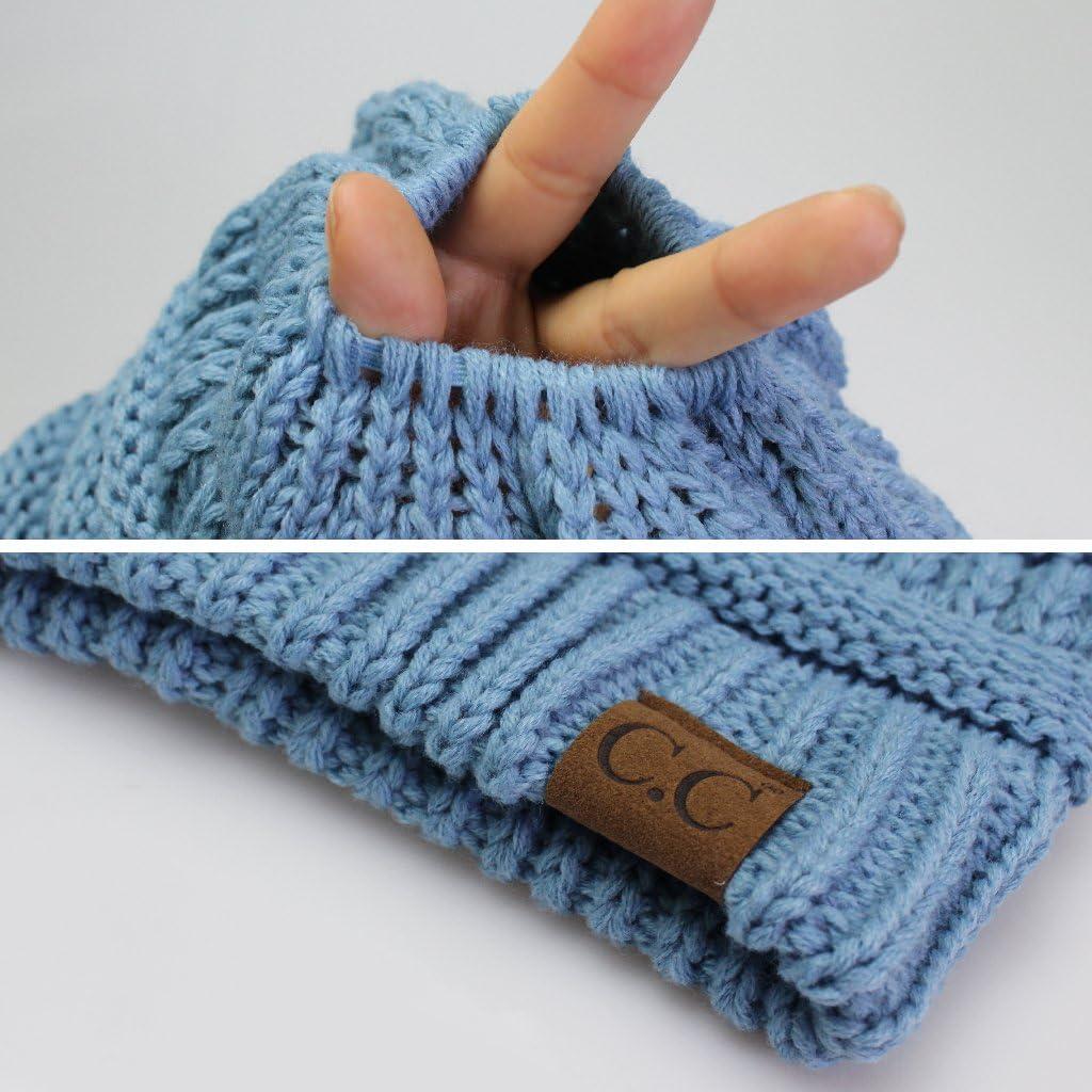 Get the C.C Exclusives Soft Stretch Cable Knit Messy Bun Ponytail Beanie Winter Hat for Women (MB-20A)(Denim) you want at a discounted price during our markdown sale event.