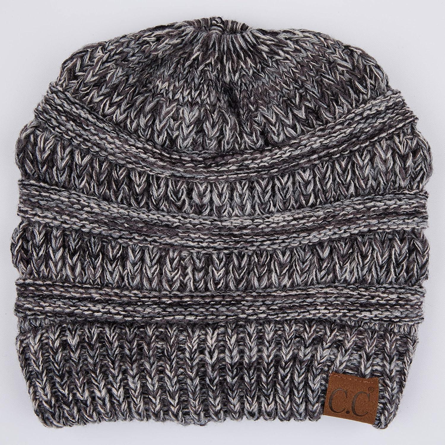 C.C Exclusives Soft Stretch Cable Knit Messy Bun Ponytail Beanie Winter Hat for Women (MB-20A)(Grey Multi(31))