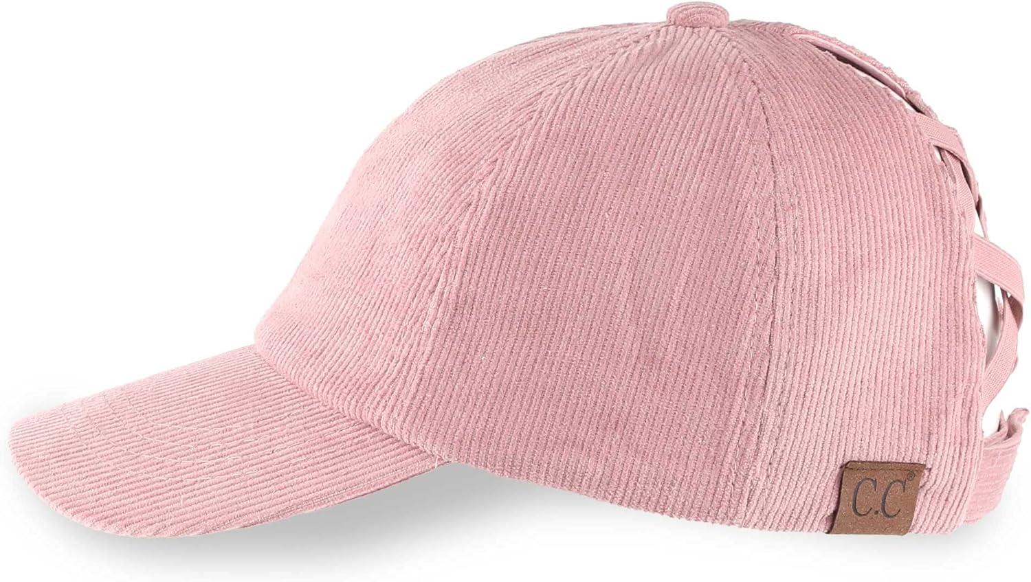C.C Exclusives Stone Washed Corduroy Criss-Cross Ponytail Baseball Cap for Women, Adjustable High Bun Hat.(Mauve)