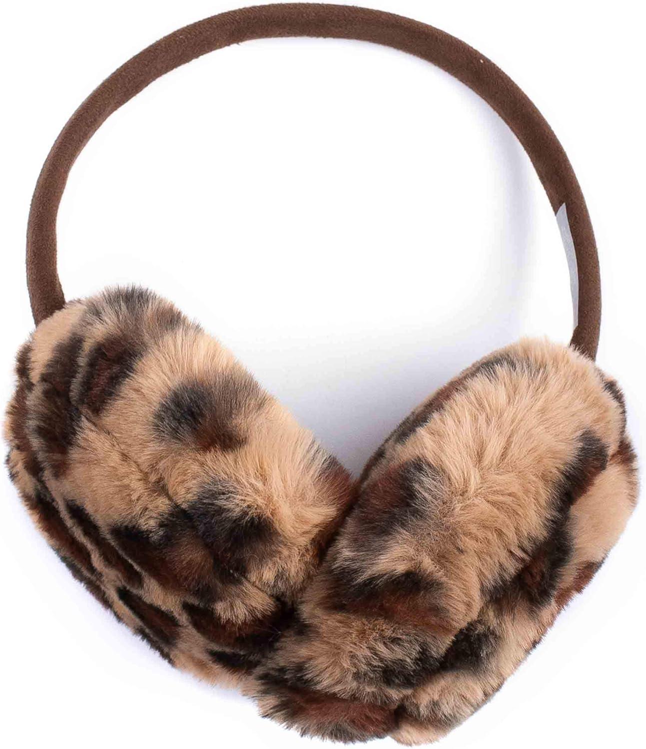 C.C Exclusives Tartan Check Earmuff with Faux Fur(EM-2339)(EM-3661)(Latte-leopard)