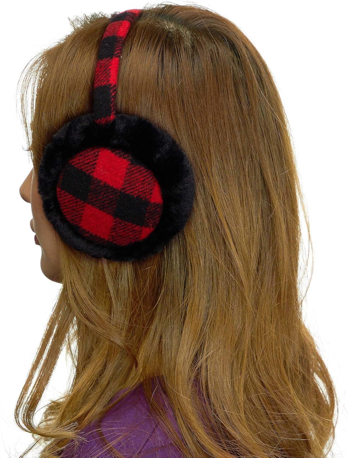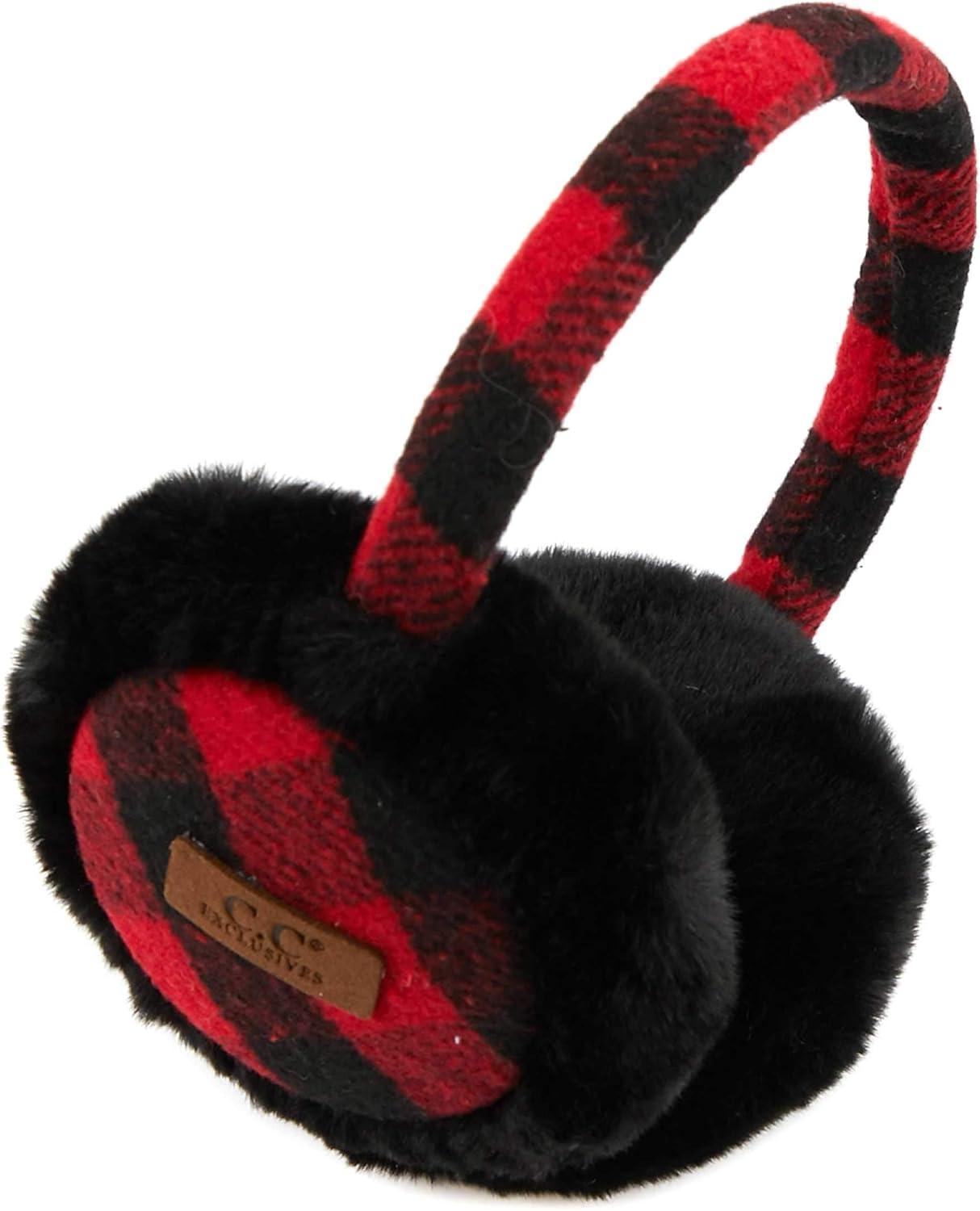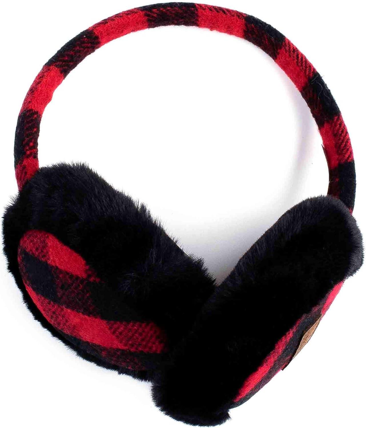 C.C Exclusives Tartan Check Earmuff with Faux Fur(EM-2339)(EM-3661)(Red/Black)