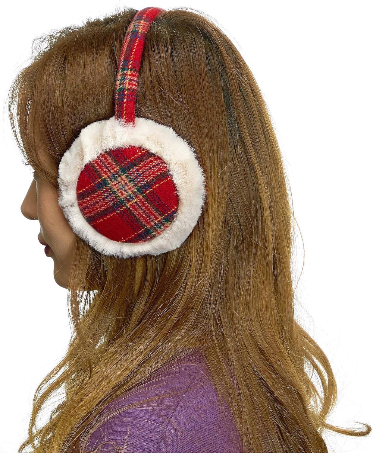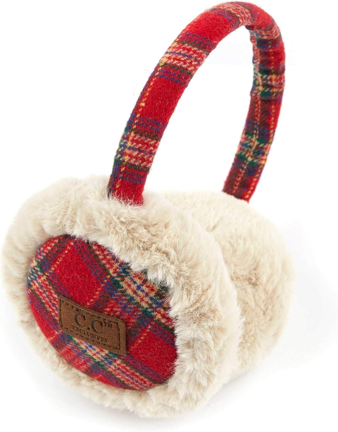 C.C Exclusives Tartan Check Earmuff with Faux Fur(EM-2339)(EM-3661)(Red)