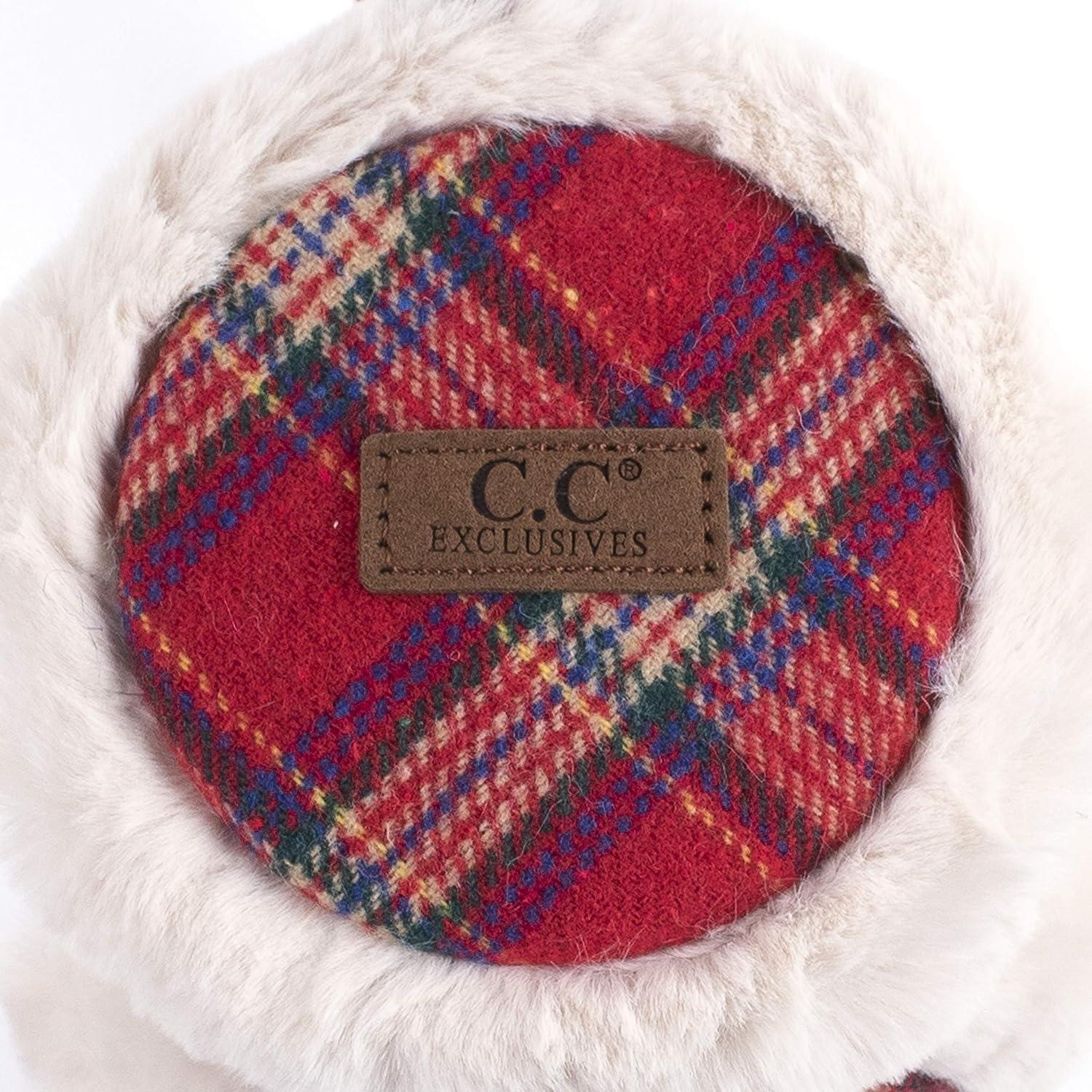 C.C Exclusives Tartan Check Earmuff with Faux Fur(EM-2339)(EM-3661)(Red/Black)