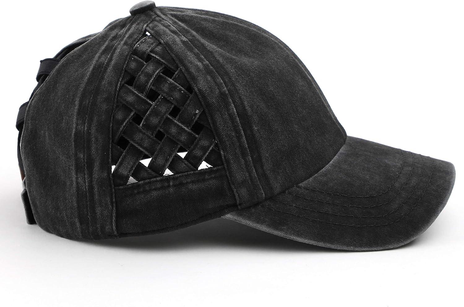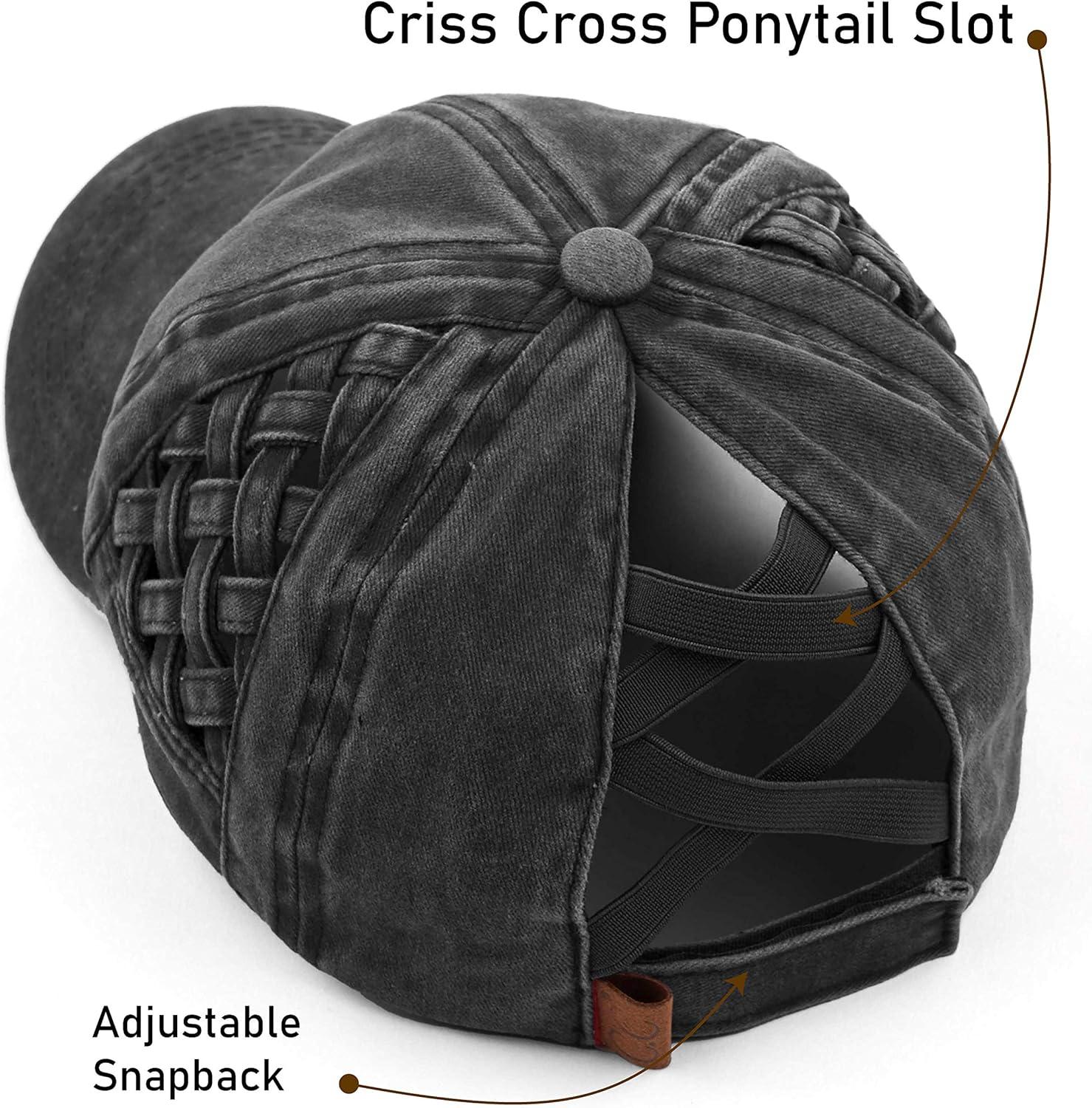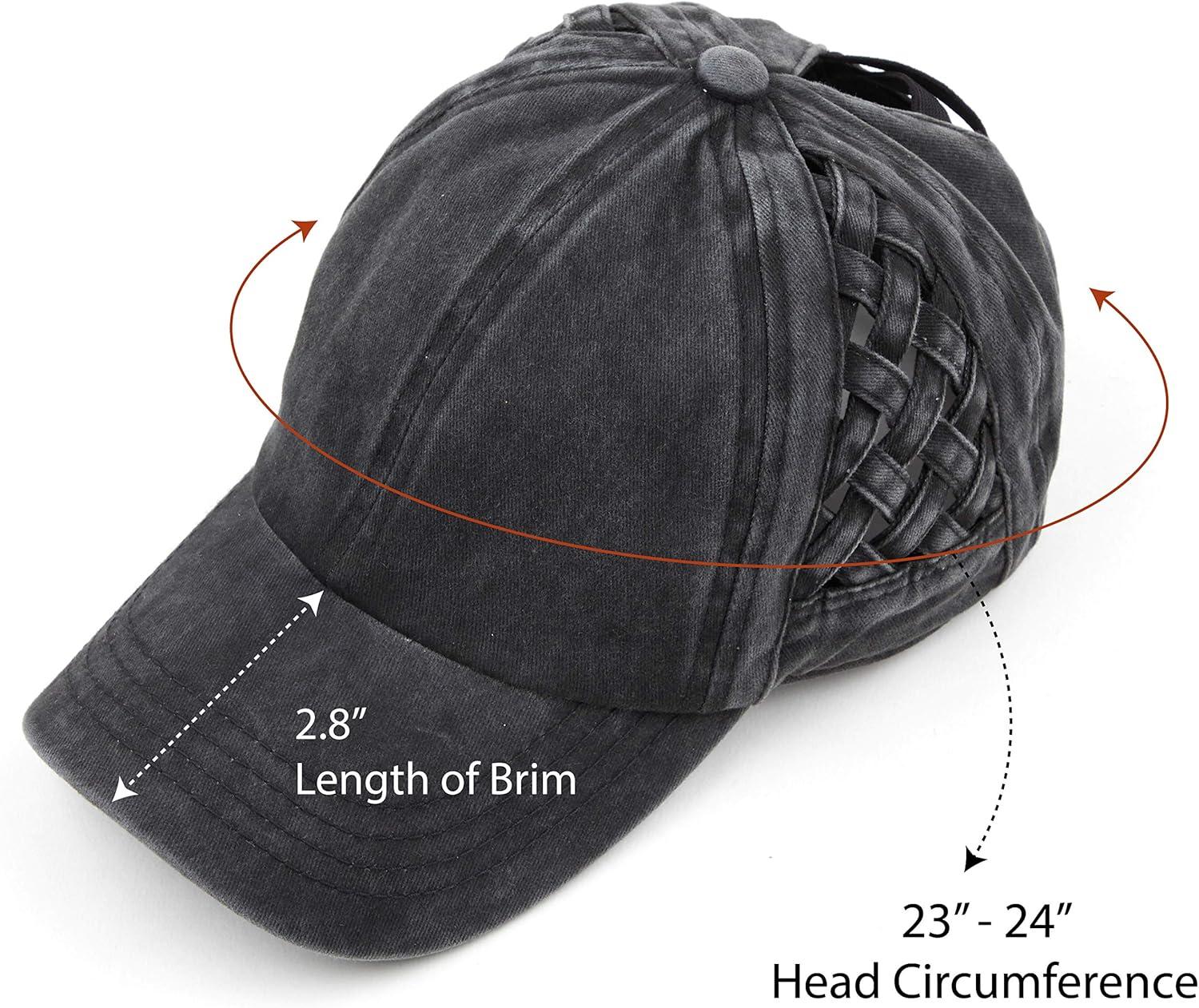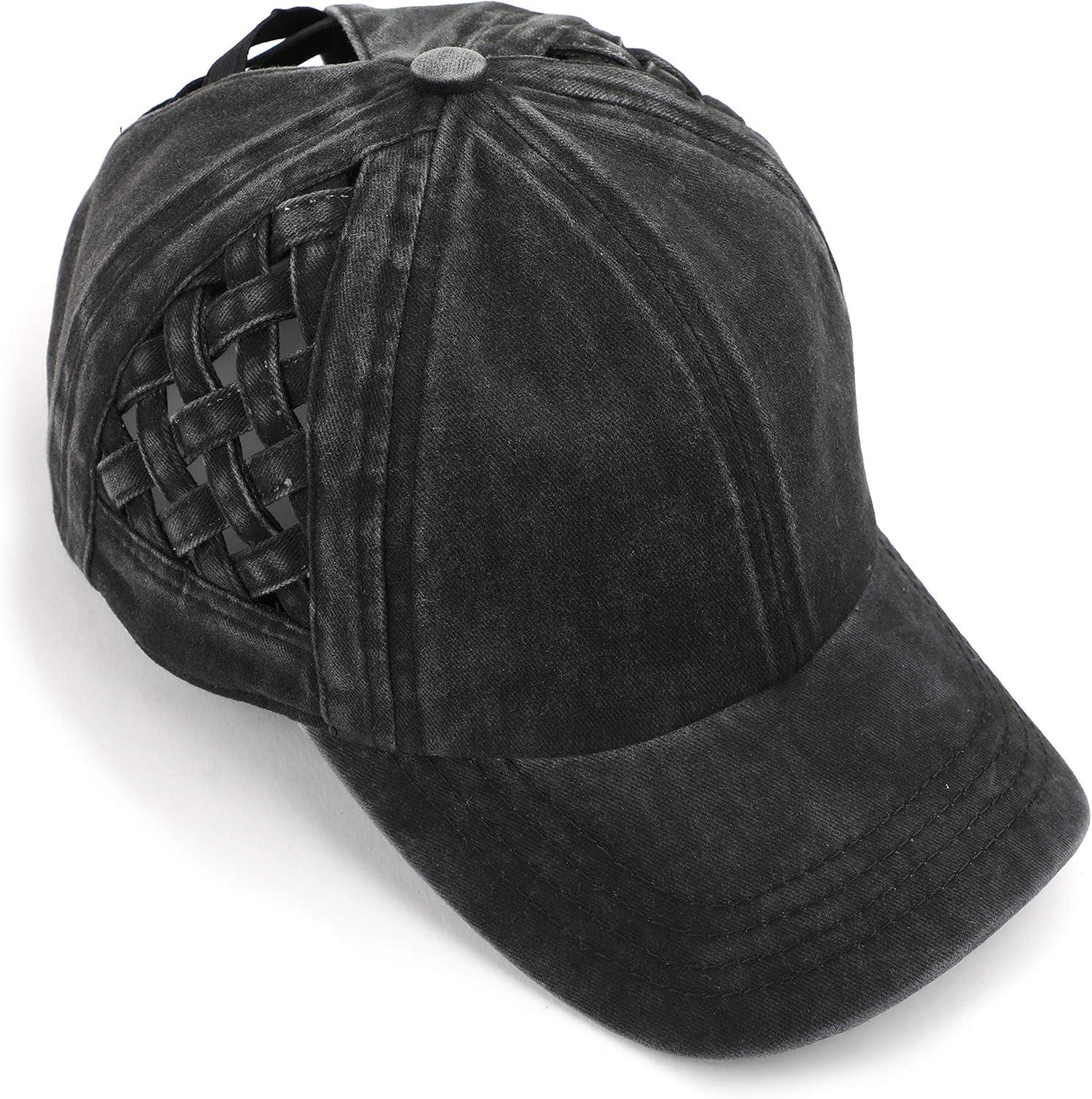 C.C Exclusives Washed Cotton Denim Basket Weave Criss-Cross Ponytail Baseball Cap Bundle Hair Tie (BT-922)(Black)