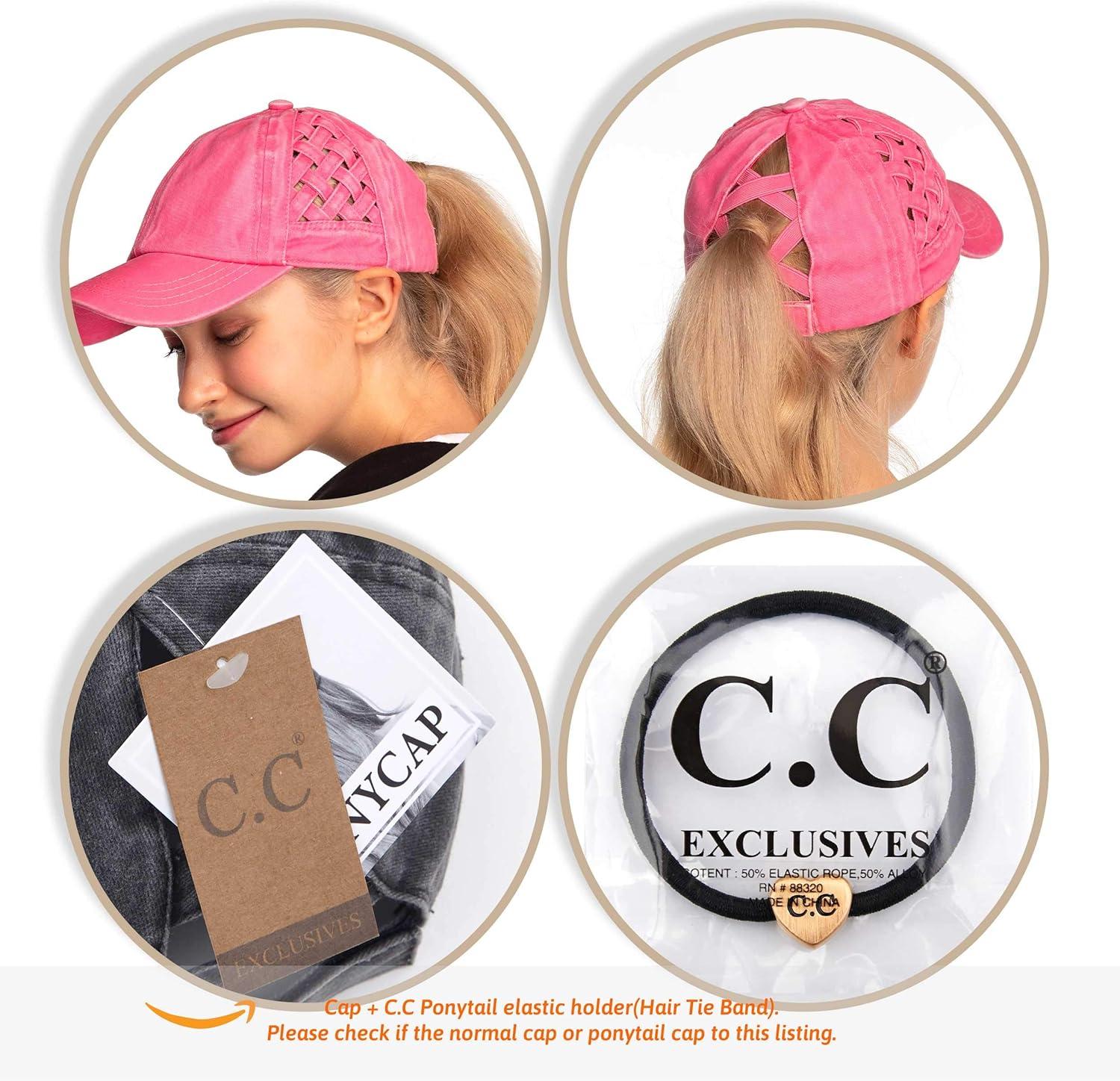 C.C Exclusives Washed Cotton Denim Basket Weave Criss-Cross Ponytail Baseball Cap Bundle Hair Tie (BT-922)(Berry)