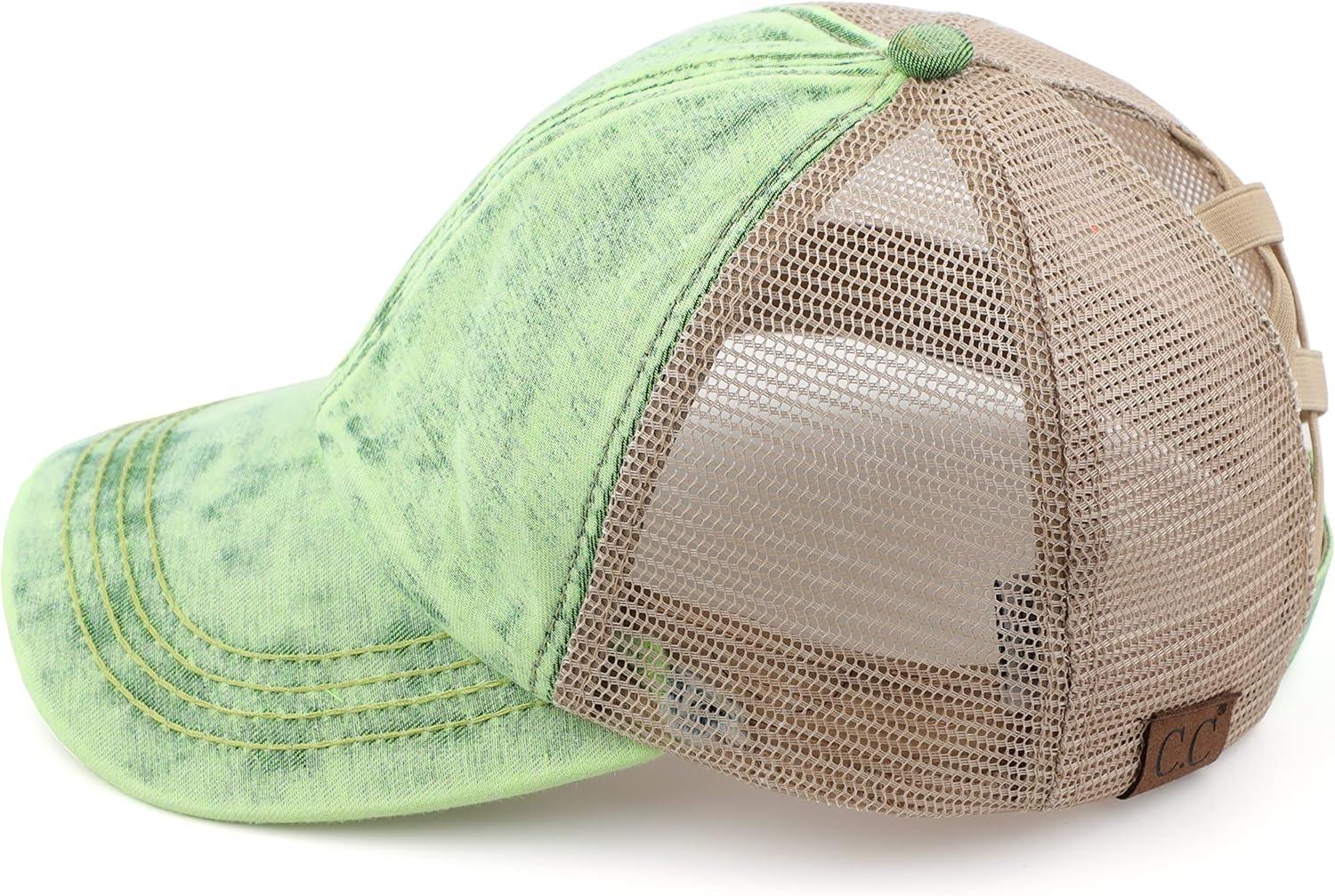 C.C Exclusives Washed Distressed Cotton Denim Criss-Cross Ponytail Hat Baseball Cap (BT-1009)(Lime)