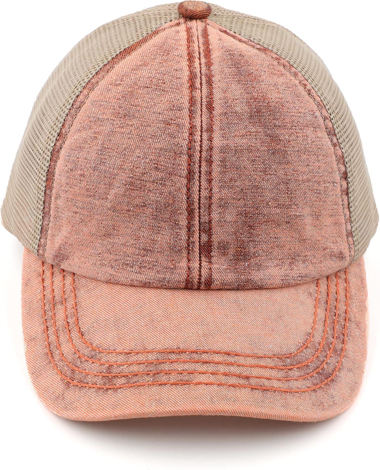 C.C Exclusives Washed Distressed Cotton Denim Criss-Cross Ponytail Hat Baseball Cap (BT-1009)(Orange)