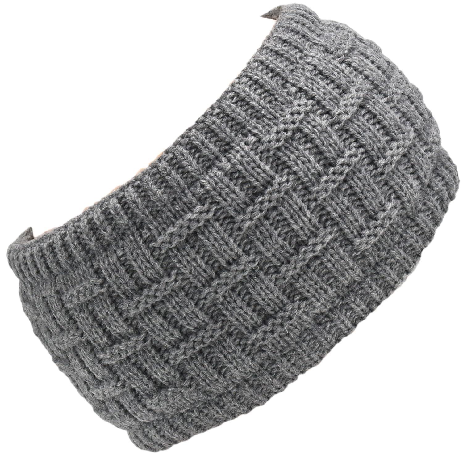 C.C Exclusives Women Headwrap Sherpa Fuzzy Fleece Lined Headband Stretch Knit Ear Warmer (Ivory)(Light Melange Grey)
