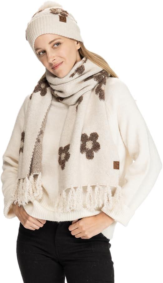 C.C Fall Winter Mulitcolored Flower Print Woven Scarf for Women(Heather Beige)