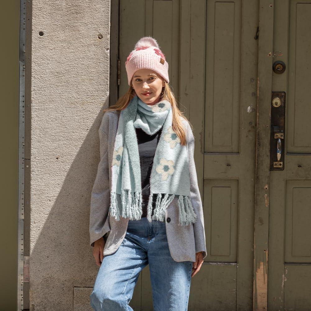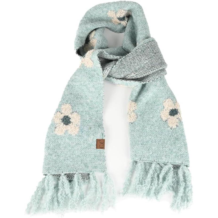 C.C Fall Winter Mulitcolored Flower Print Woven Scarf for Women(Heather Mint)