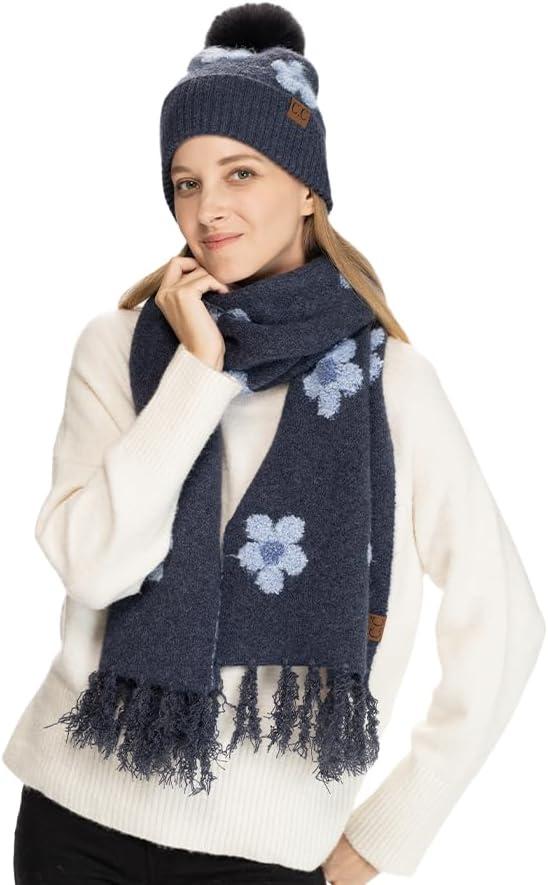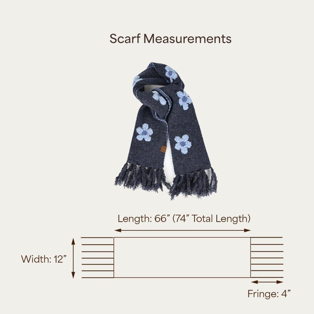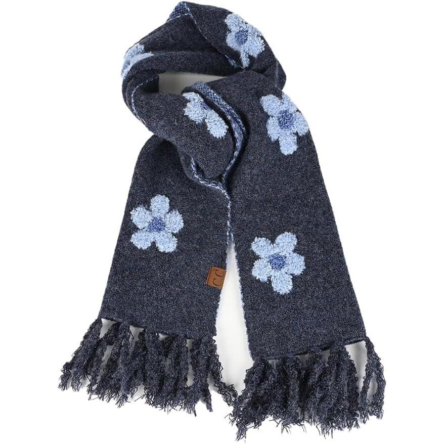 C.C Fall Winter Mulitcolored Flower Print Woven Scarf for Women(Heather Navy)