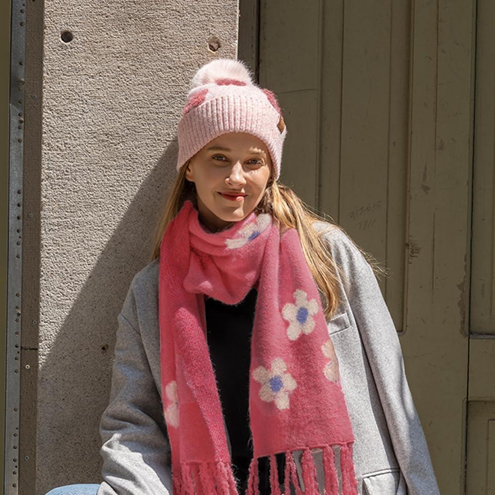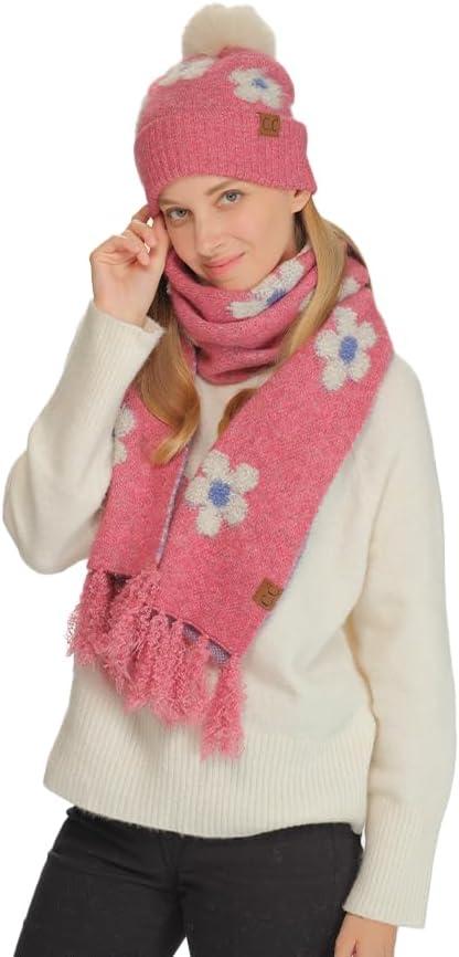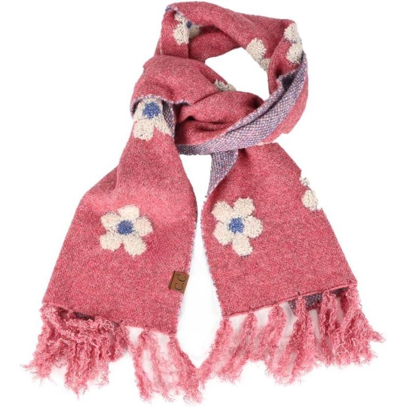 C.C Fall Winter Mulitcolored Flower Print Woven Scarf for Women(Heather Rose)