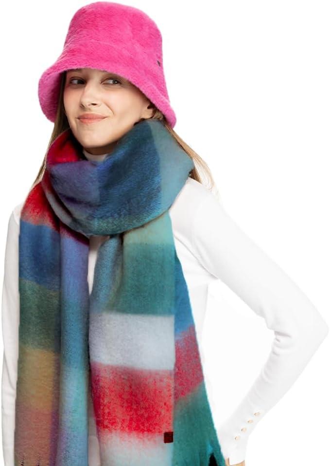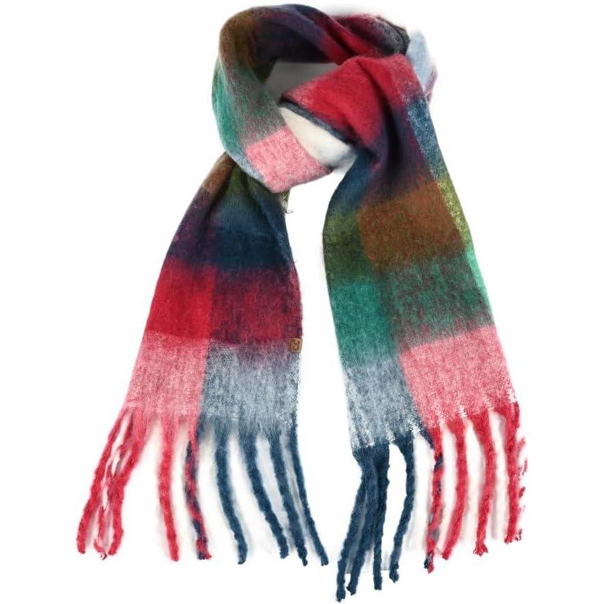 C.C Fall Winter Solid and Multicolored Woven Knit Scarf for Women(Checkered-col2)
