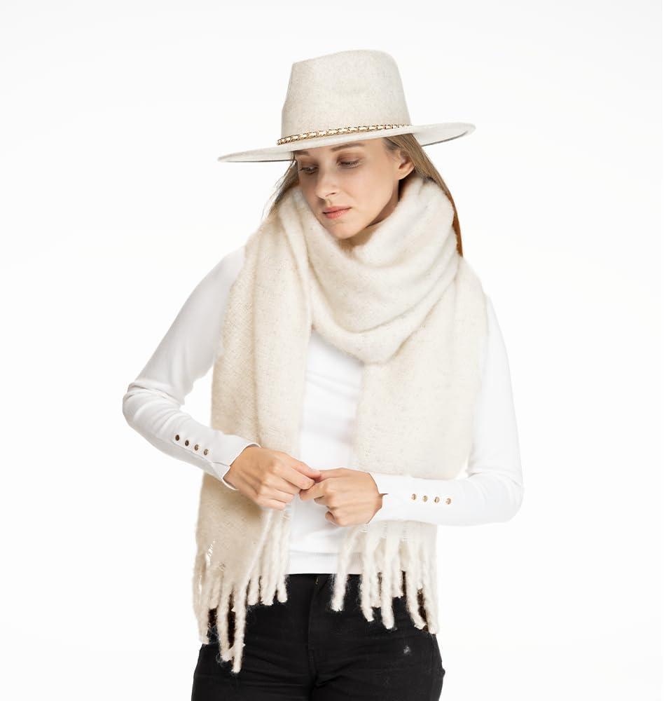 C.C Fall Winter Solid and Multicolored Woven Knit Scarf for Women(Solid Beige)