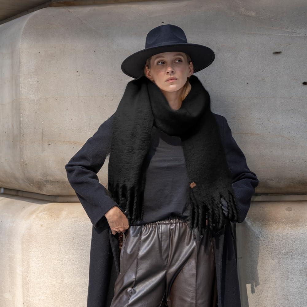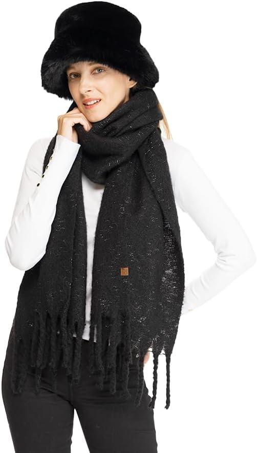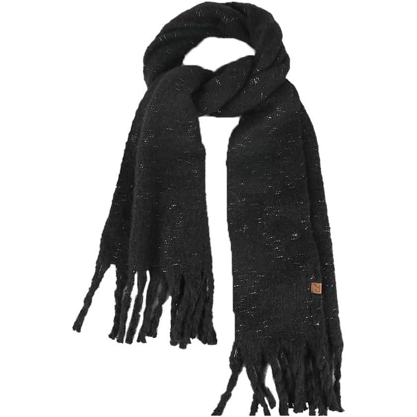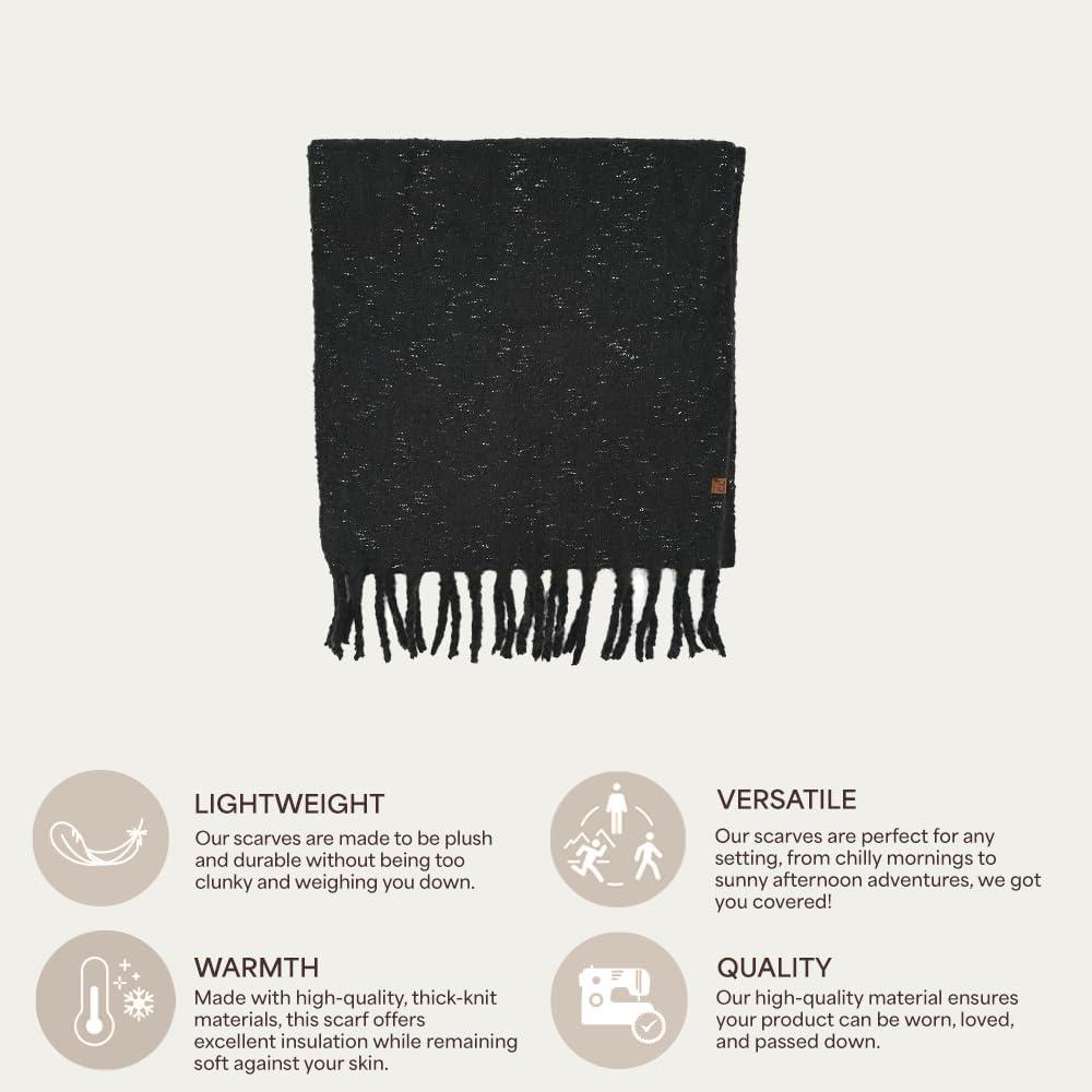 C.C Fall Winter Solid and Multicolored Woven Knit Scarf for Women(Solid Black)