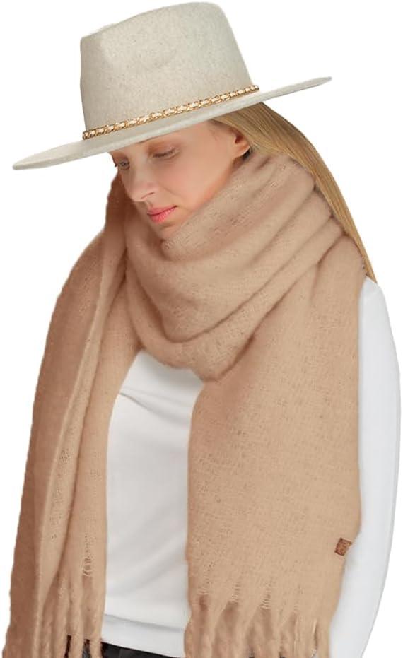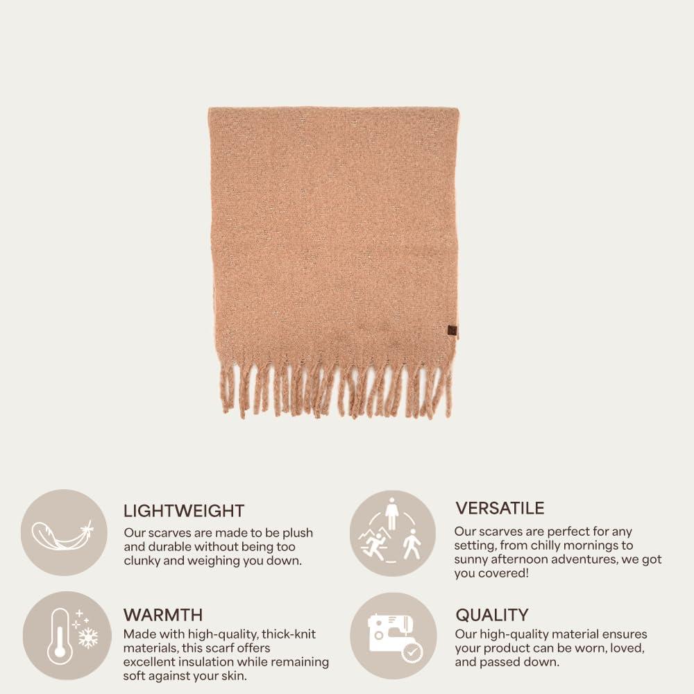 C.C Fall Winter Solid and Multicolored Woven Knit Scarf for Women(Solid Camel)