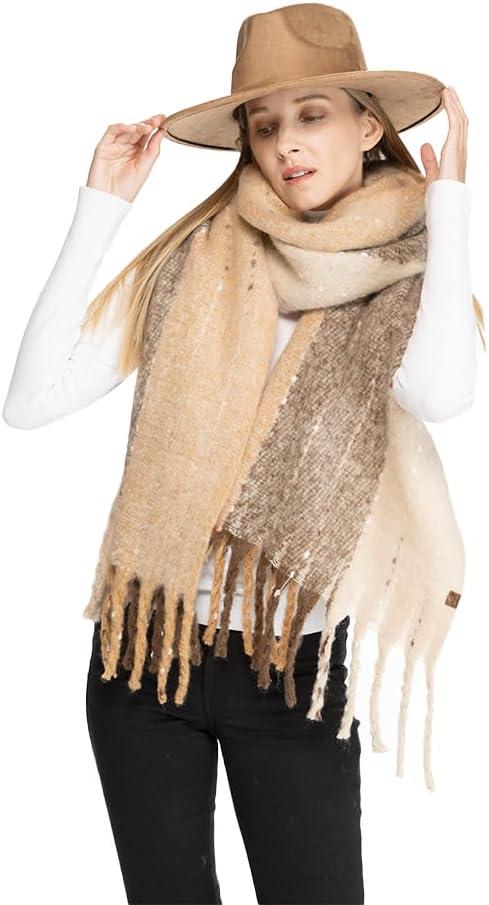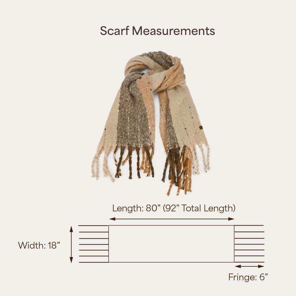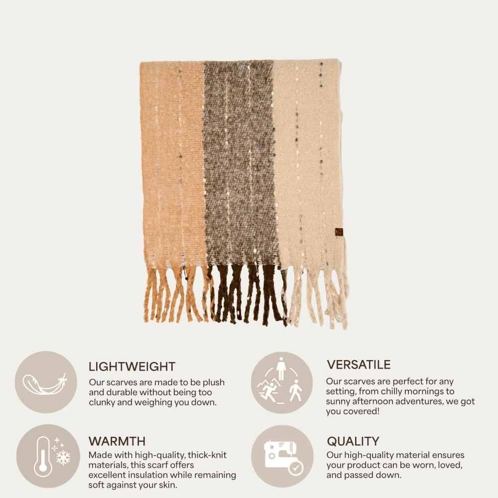 C.C Fall Winter Solid and Multicolored Woven Knit Scarf for Women(Stripe-beige)