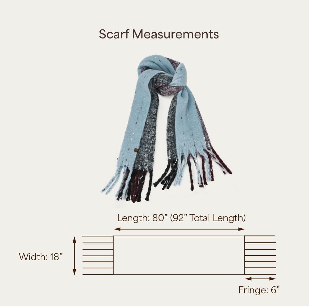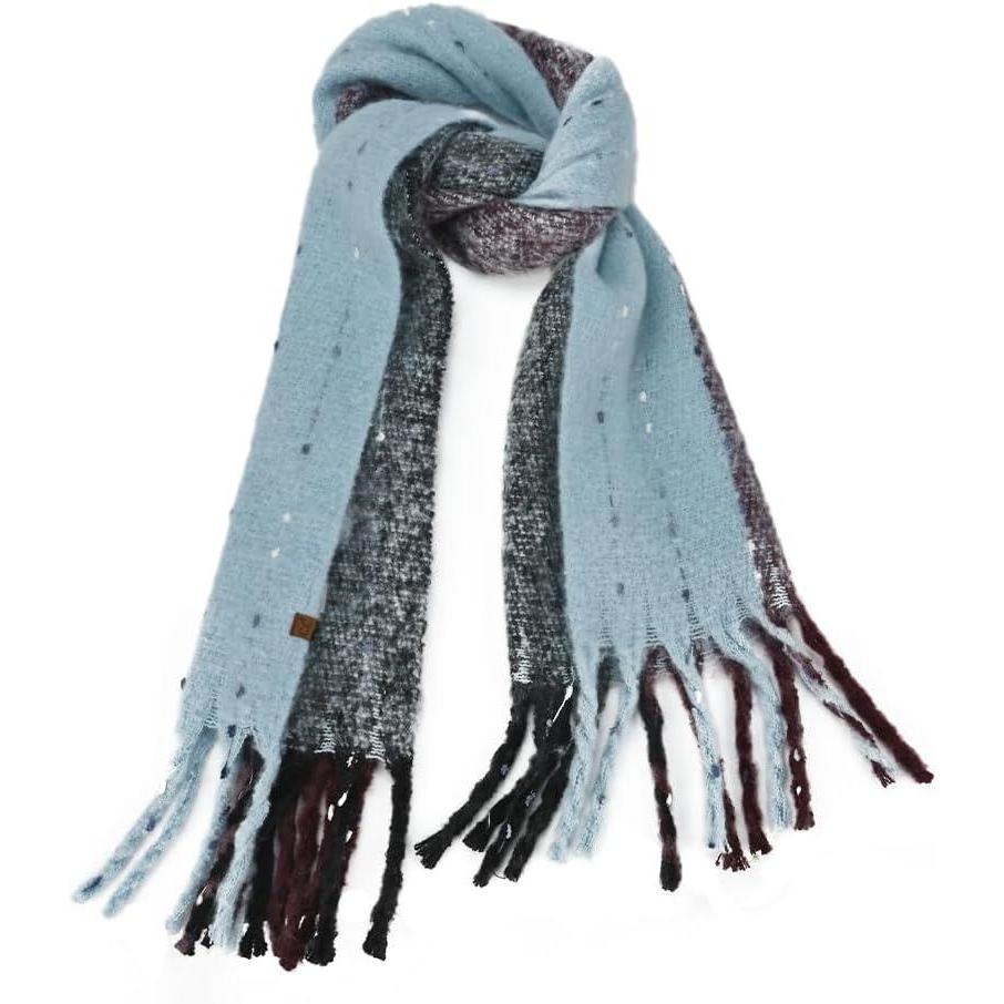 C.C Fall Winter Solid and Multicolored Woven Knit Scarf for Women(Stripe-blue)
