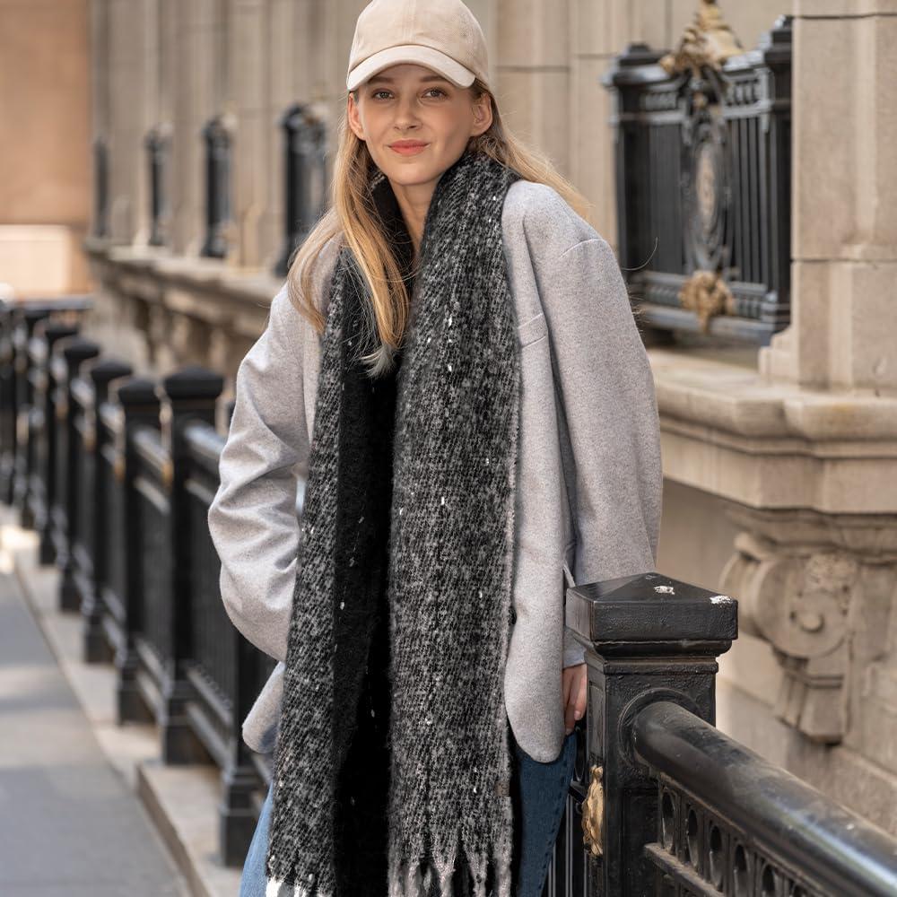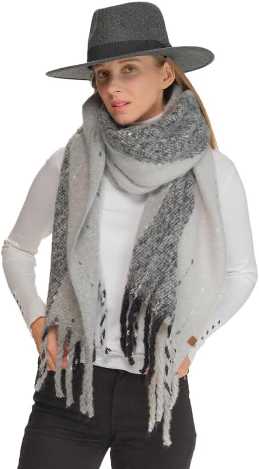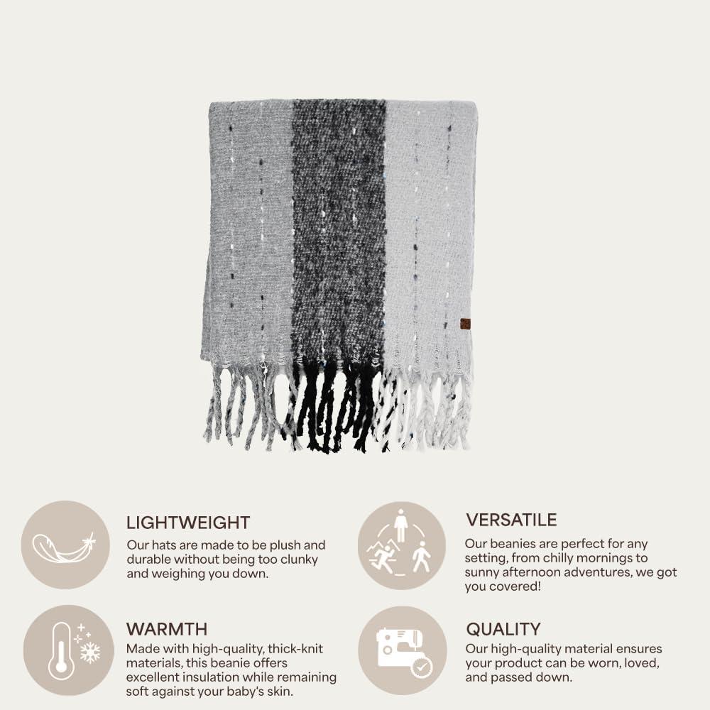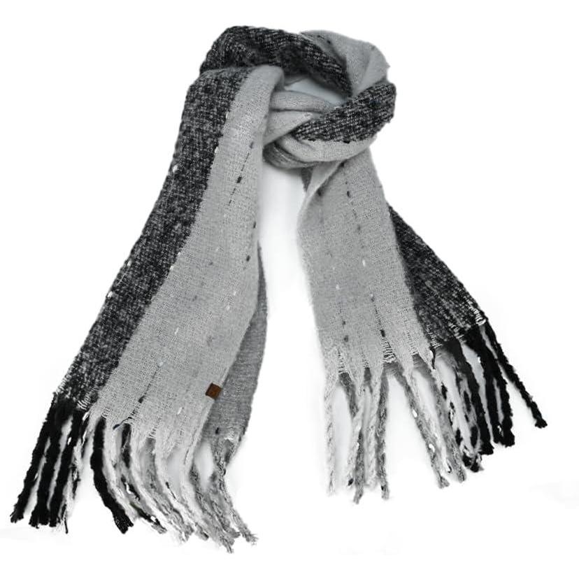C.C Fall Winter Solid and Multicolored Woven Knit Scarf for Women(Stripe-grey)