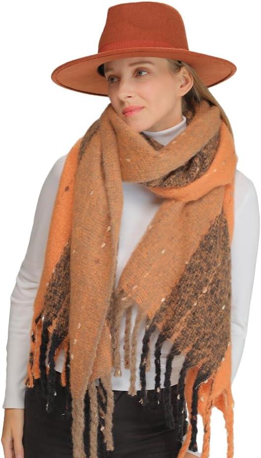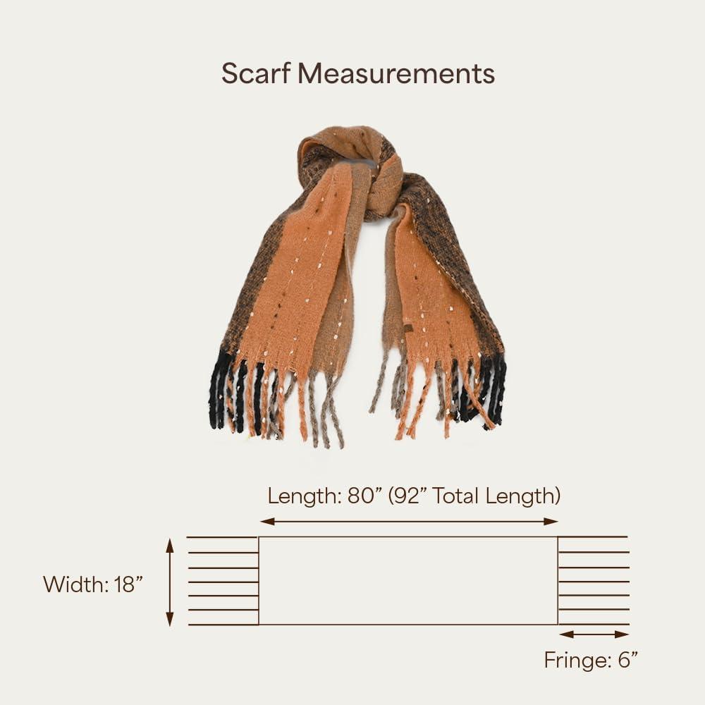 C.C Fall Winter Solid and Multicolored Woven Knit Scarf for Women(Stripe-rust)