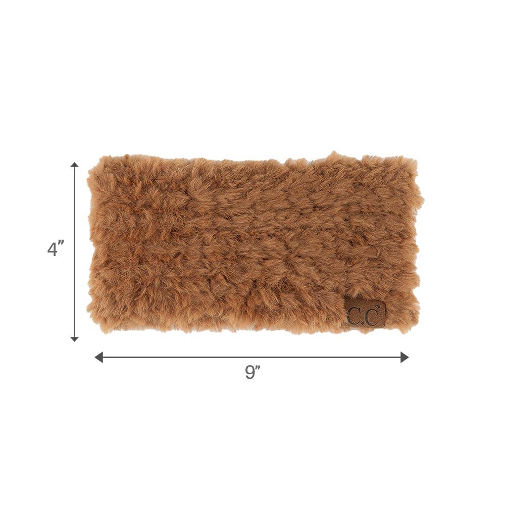 C.C Faux Fur Headwrap For Women Unisex - Fuzzy Stretchable Soft Warm Winter Headband Ear warmer Ear muffs (Ivory)(CH Brown)
