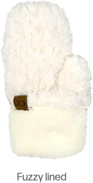 C.C Faux Fur Mitten For Women Unisex – Stretchable Soft Warm Cold weather Winter Gloves(Ivory)