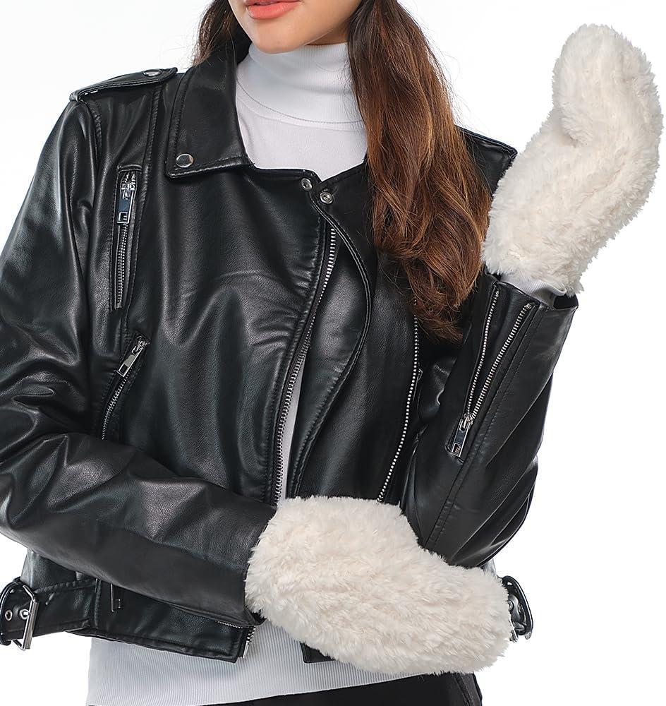 imageCC Faux Fur Mitten For Women Unisex  Stretchable Soft Warm Cold weather Winter GlovesIvory