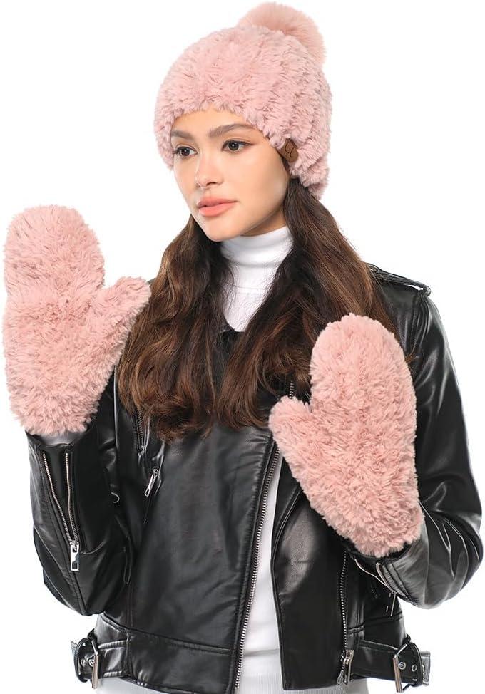 imageCC Faux Fur Mitten For Women Unisex  Stretchable Soft Warm Cold weather Winter GlovesRose