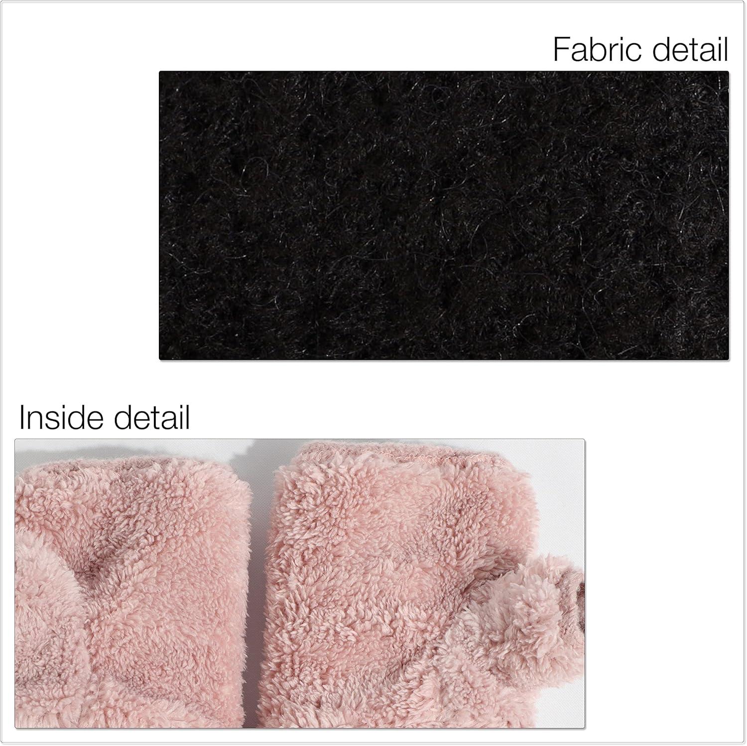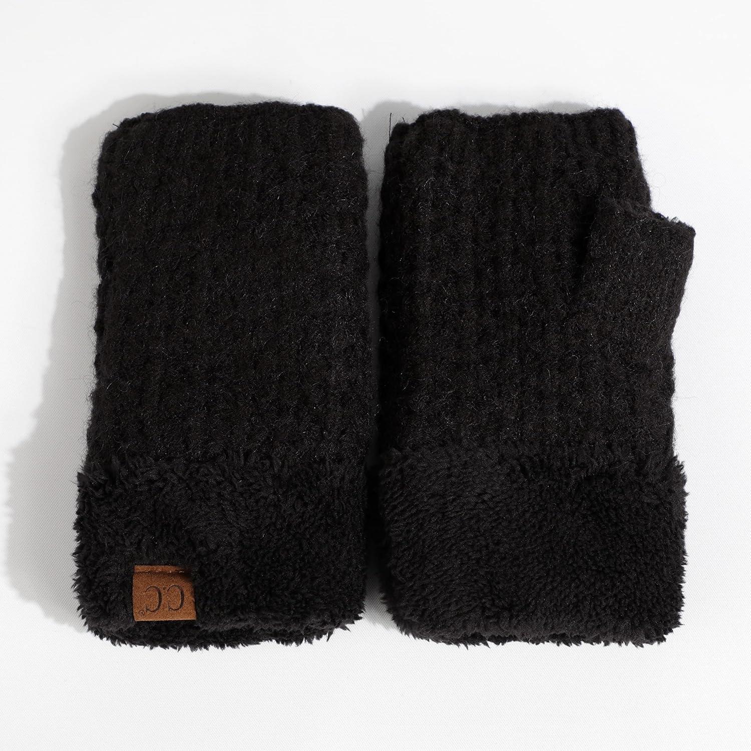 imageCC Fingerless Gloves for Women  Fuzzy Lined Knit Wrist Warmers Ribbed Smocking Stitch Soft Acrylic FLG25A Smocking Stitch Patternblack