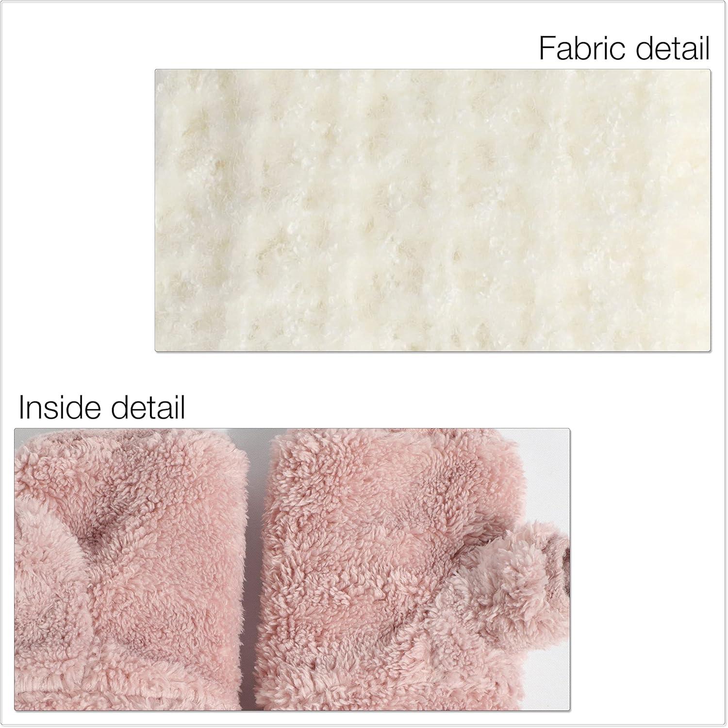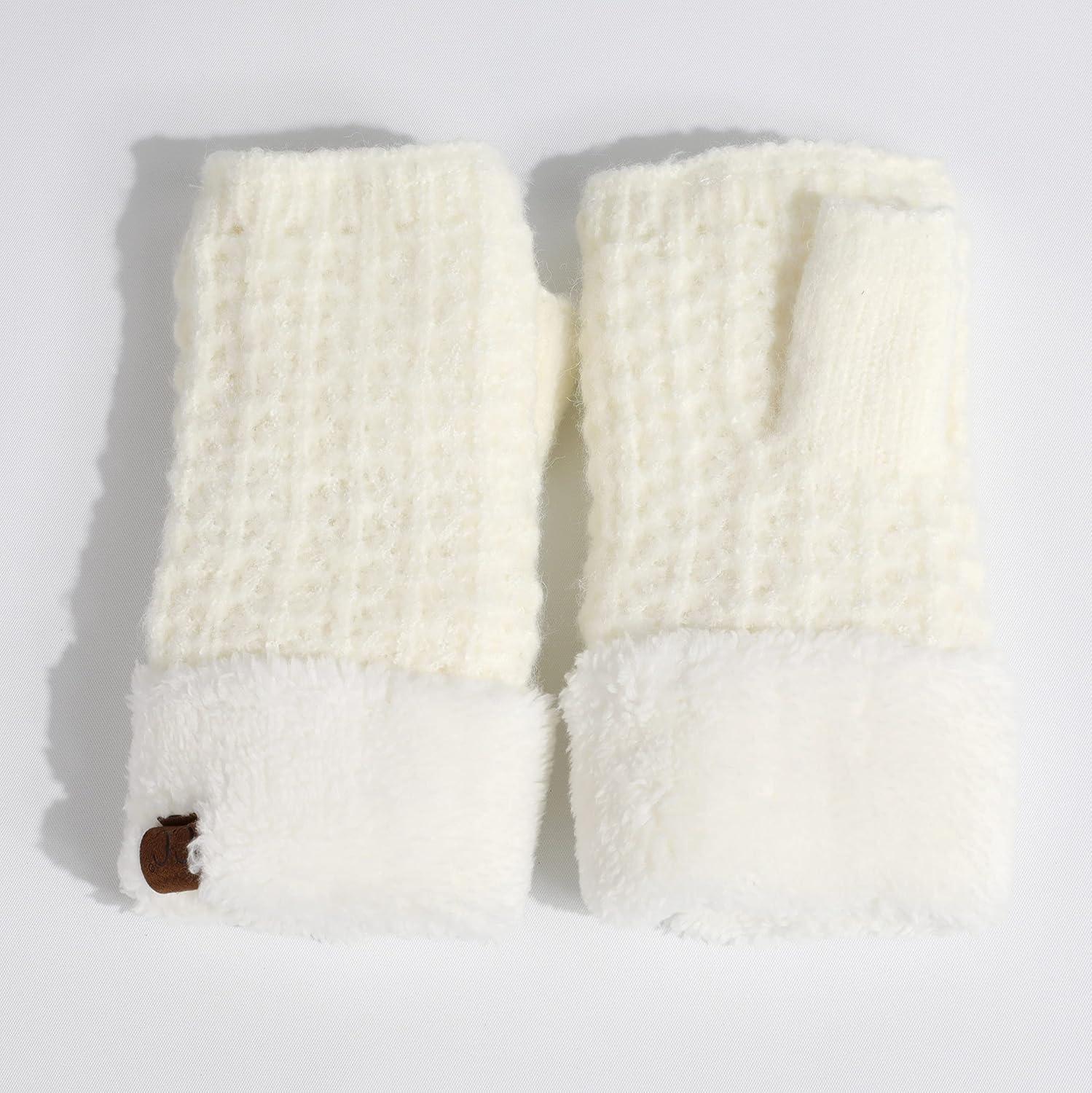 C.C Fingerless Gloves for Women – Fuzzy Lined Knit Wrist Warmers, Ribbed Smocking Stitch, Soft Acrylic (FLG-25)(A Smocking Stitch Pattern-ivory)