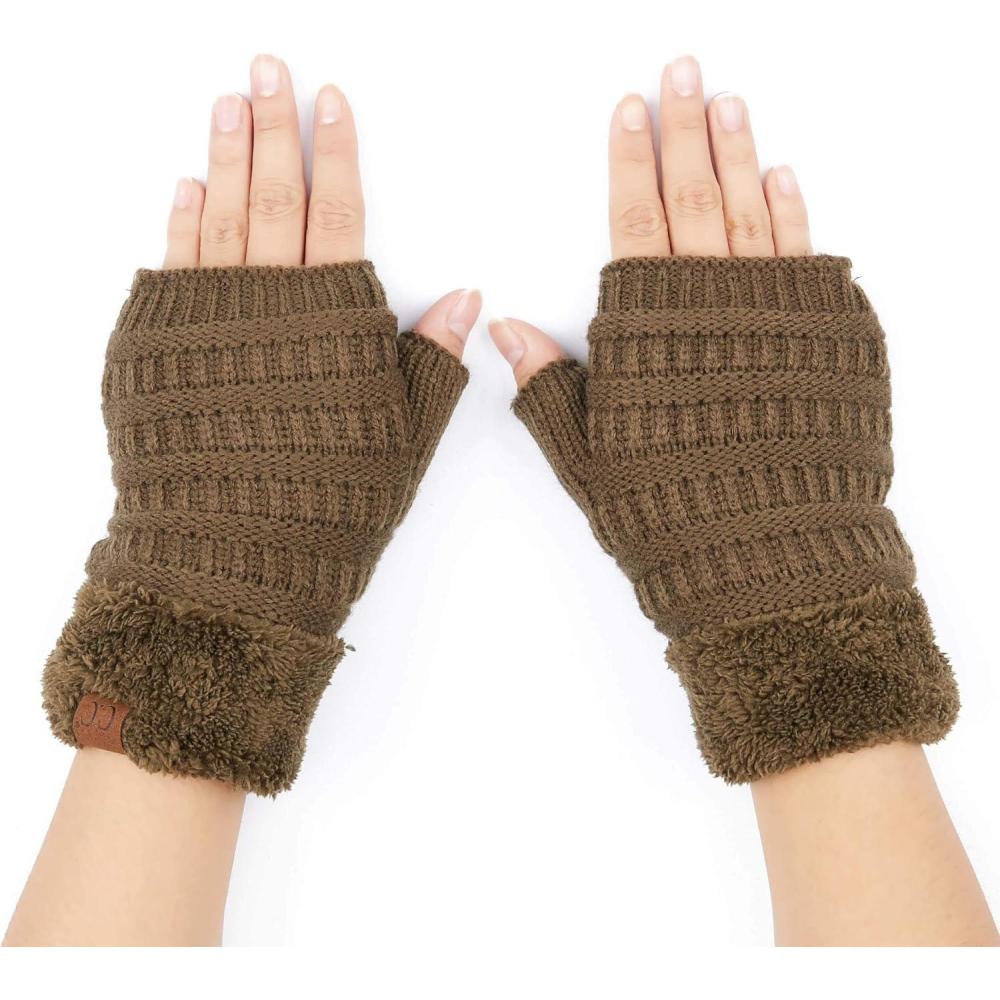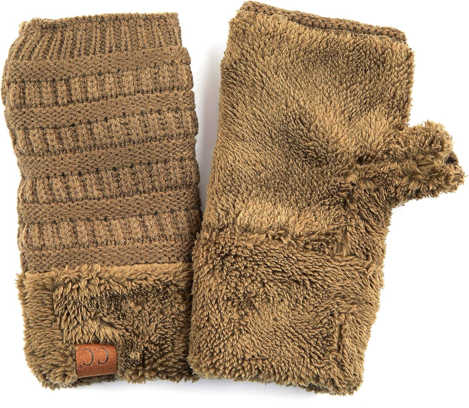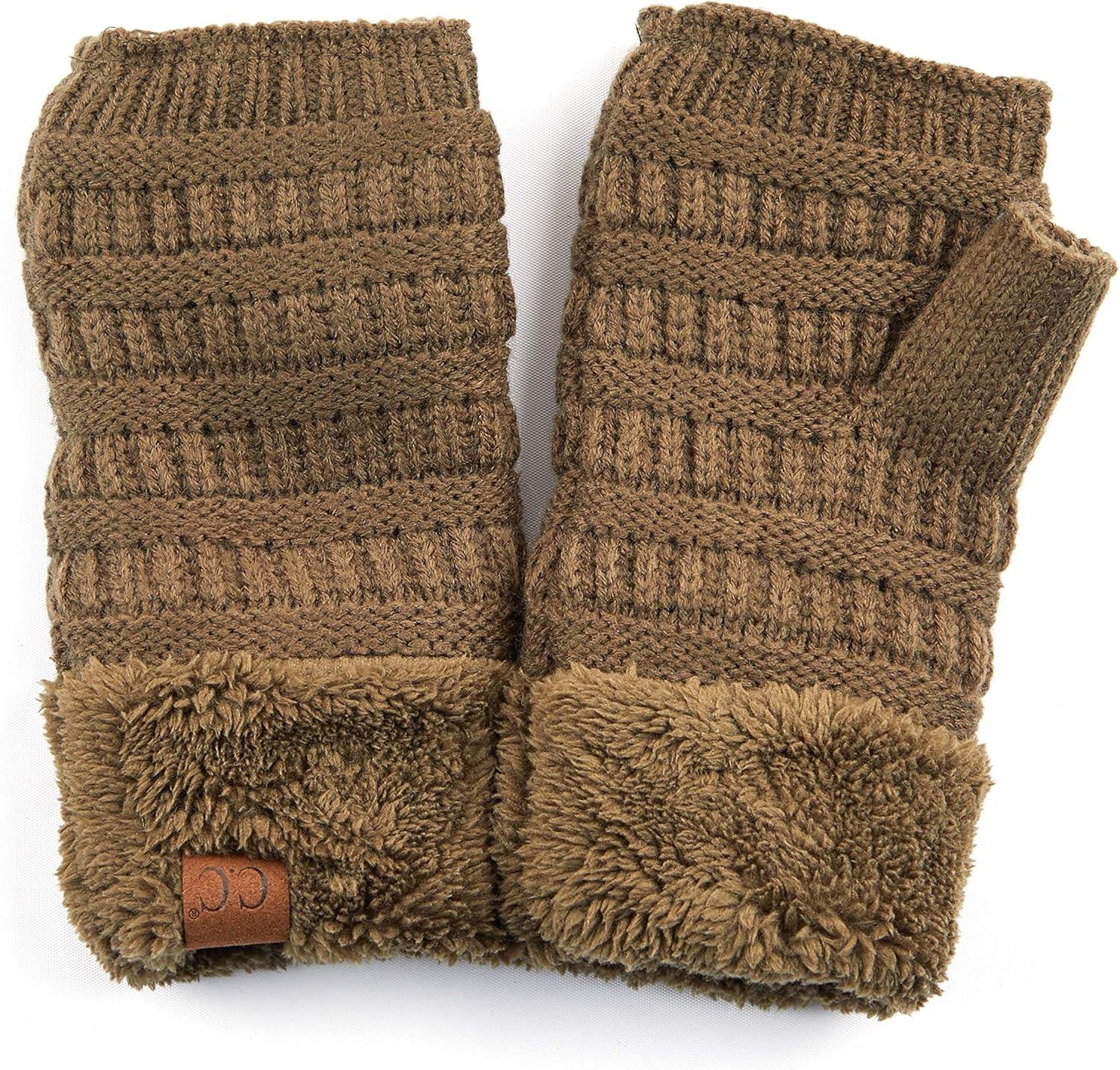 C.C Fingerless Gloves for Women – Fuzzy Lined Knit Wrist Warmers, Ribbed Smocking Stitch, Soft Acrylic (FLG-25)(New Olive)