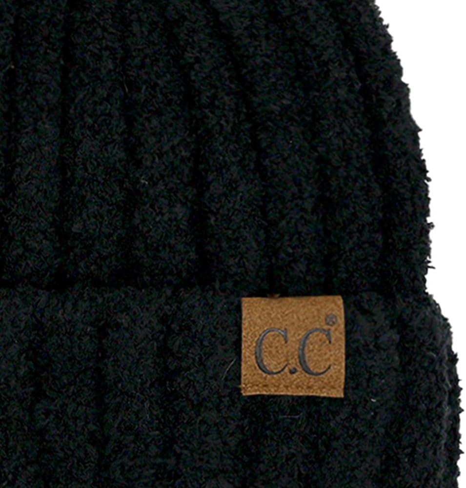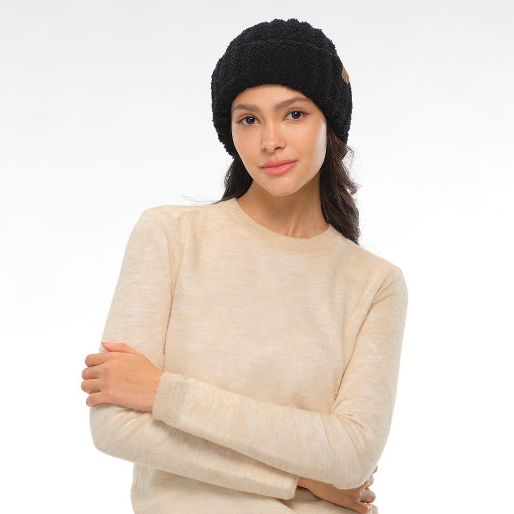 C.C Fuzzy Beanie for Women Unisex – Acrylic Stretchable Soft Warm Knit Winter Skully Hat(Acrylic-black)